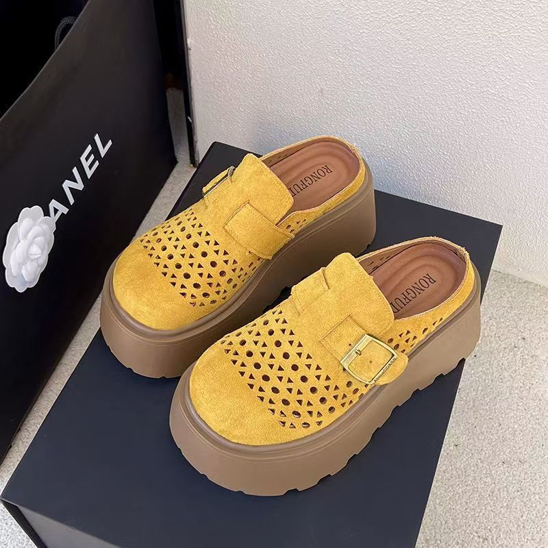여름 아우터로 입기 좋은 여성용 인기 두꺼운 밑창 이너 키높이 버켄스탁 샌들 2025 게으른 중공 발가락 반슬리퍼