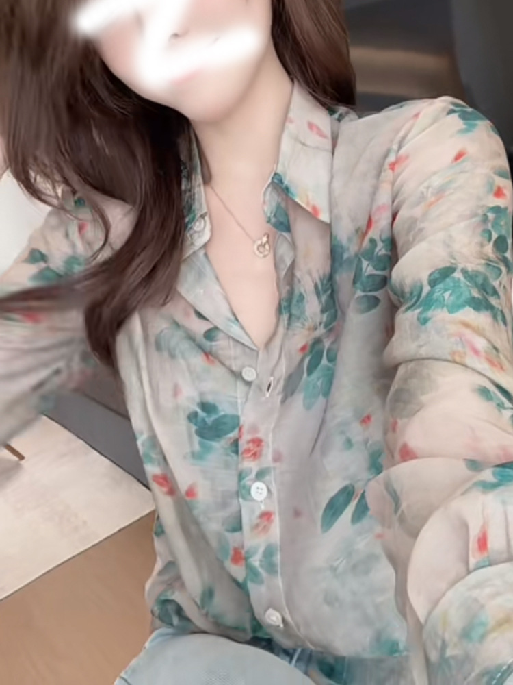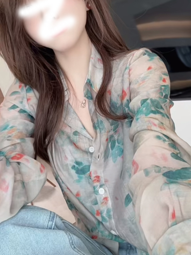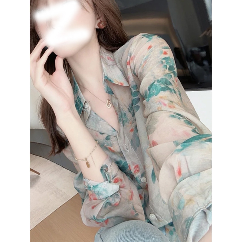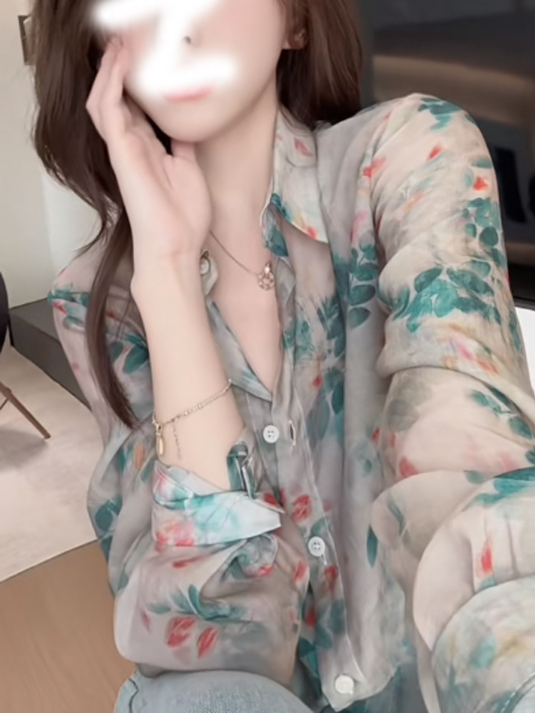 여성을위한 긴팔 꽃 무늬 쉬폰 셔츠 2025 새로운 핫 스타일 라이트 럭셔리 하이 엔드 봄 여름 아름다운 셔츠 자외선 차단 탑스토어 가기