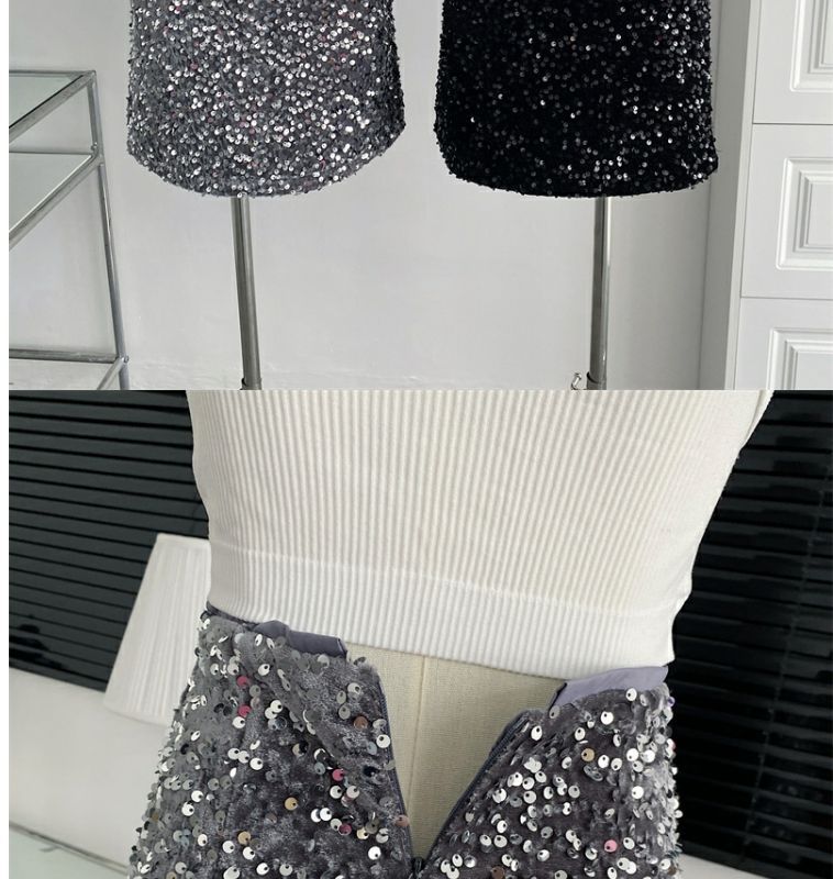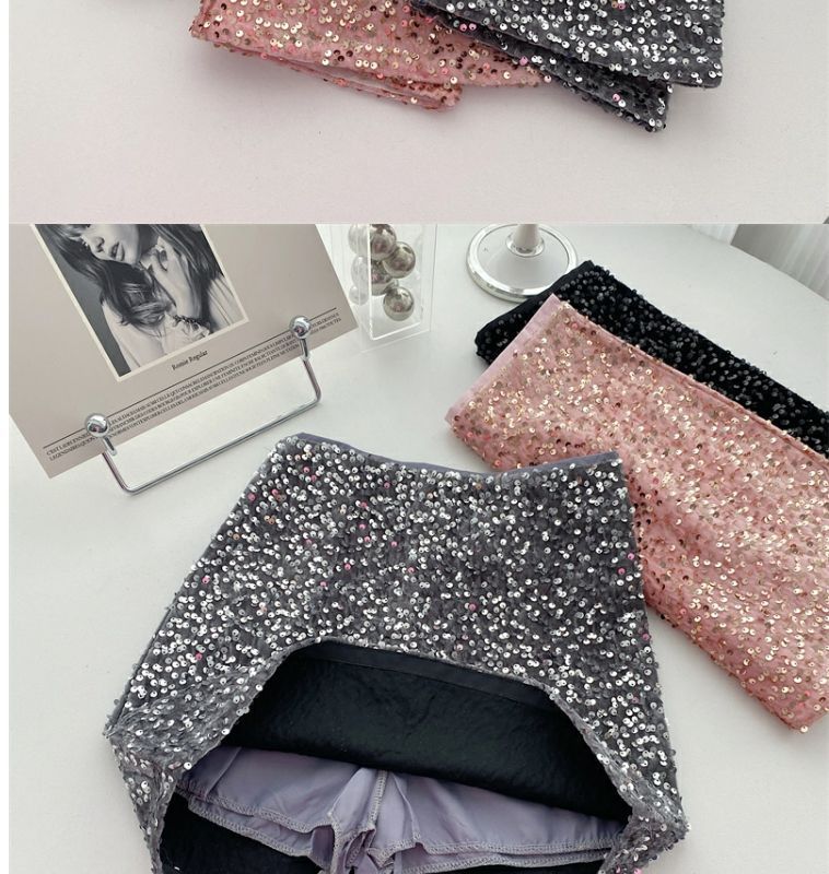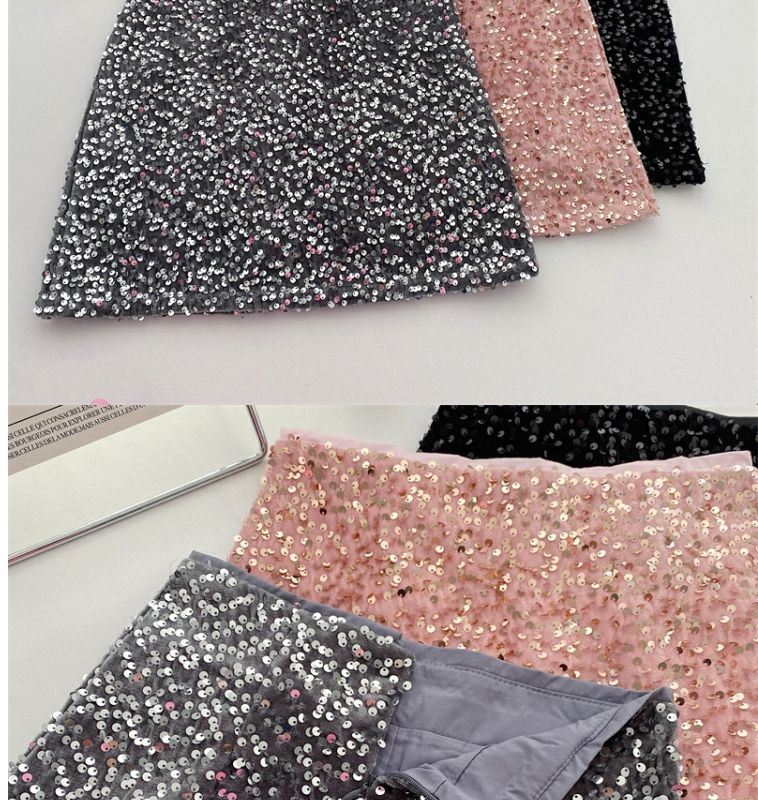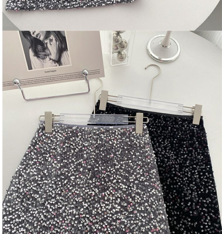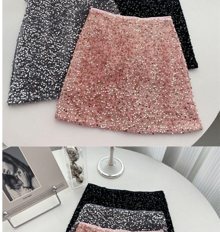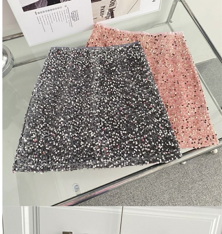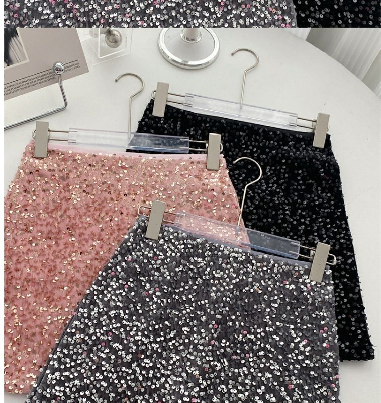패셔너블한 디자인, 반짝이는 스팽글, 하이웨이스트 슬리밍 스커트, 노출방지 숏스커트, A라인 스커트, 여성용 힙커버 스커트