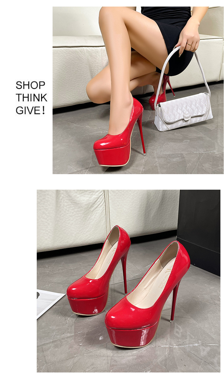 빅사이즈 여성 하이힐 나이트클럽 연회용 방수 플랫폼 16cm 초슬림 힐 단화 라운드 토 두꺼운 밑창 하이힐 여성화스토어 가기