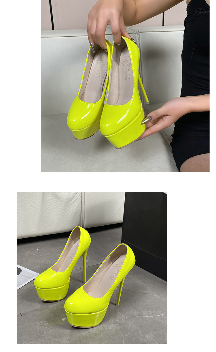 빅사이즈 여성 하이힐 나이트클럽 연회용 방수 플랫폼 16cm 초슬림 힐 단화 라운드 토 두꺼운 밑창 하이힐 여성화