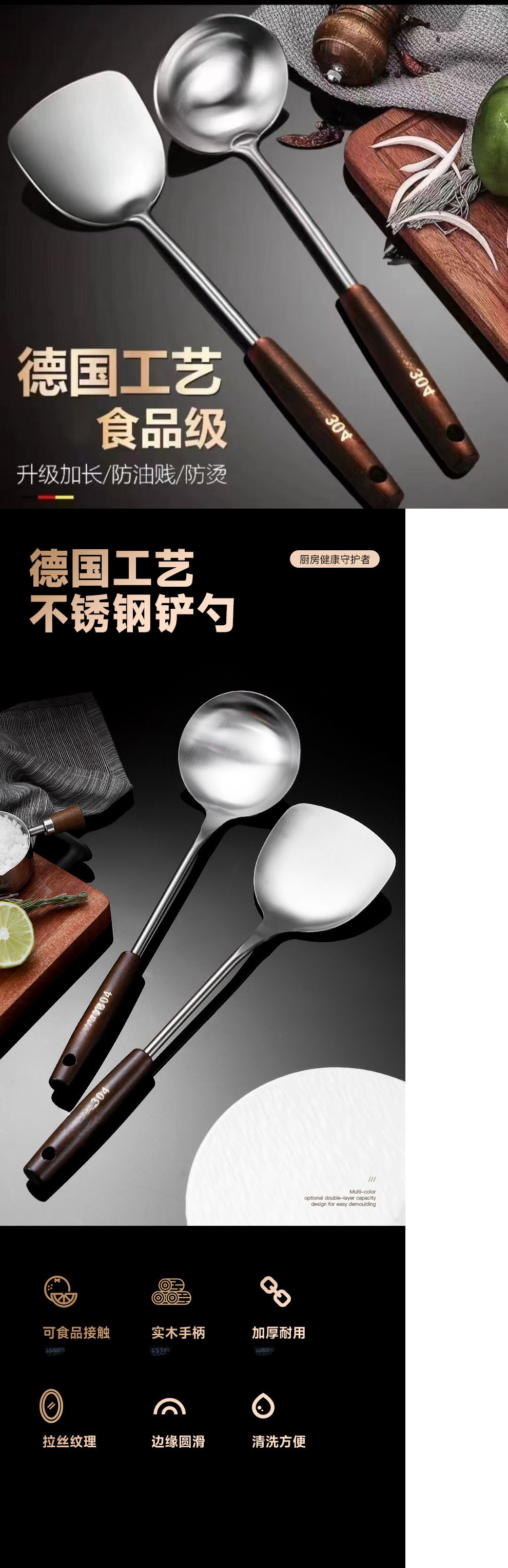• 원목 손잡이 [주걱 + 수프 스푼] 304 스테인레스 스틸