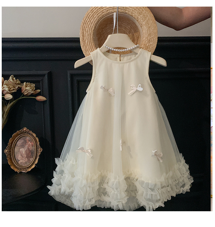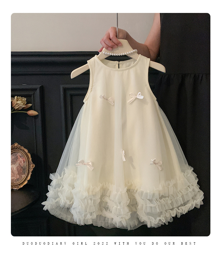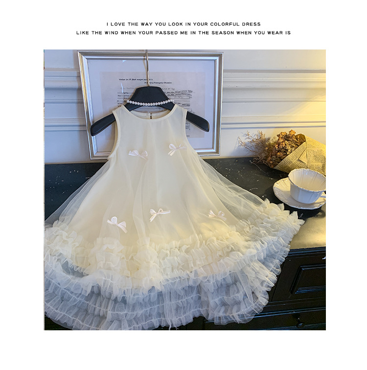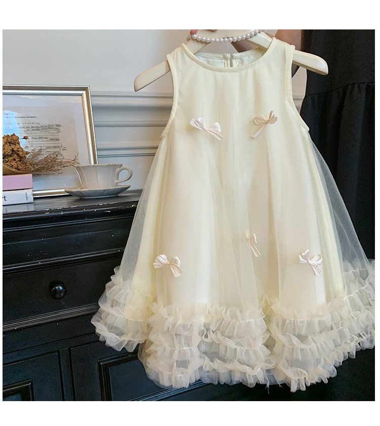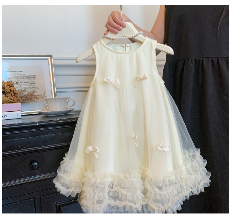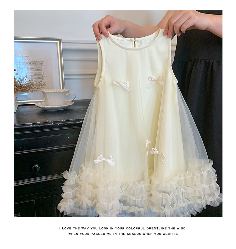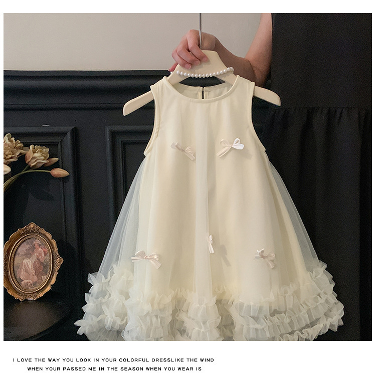 2026 여름 여아 민소매 입체 리본 메쉬 스커트 여아 달콤한 원피스