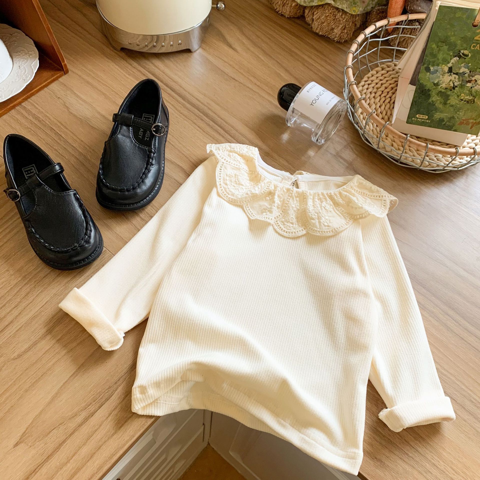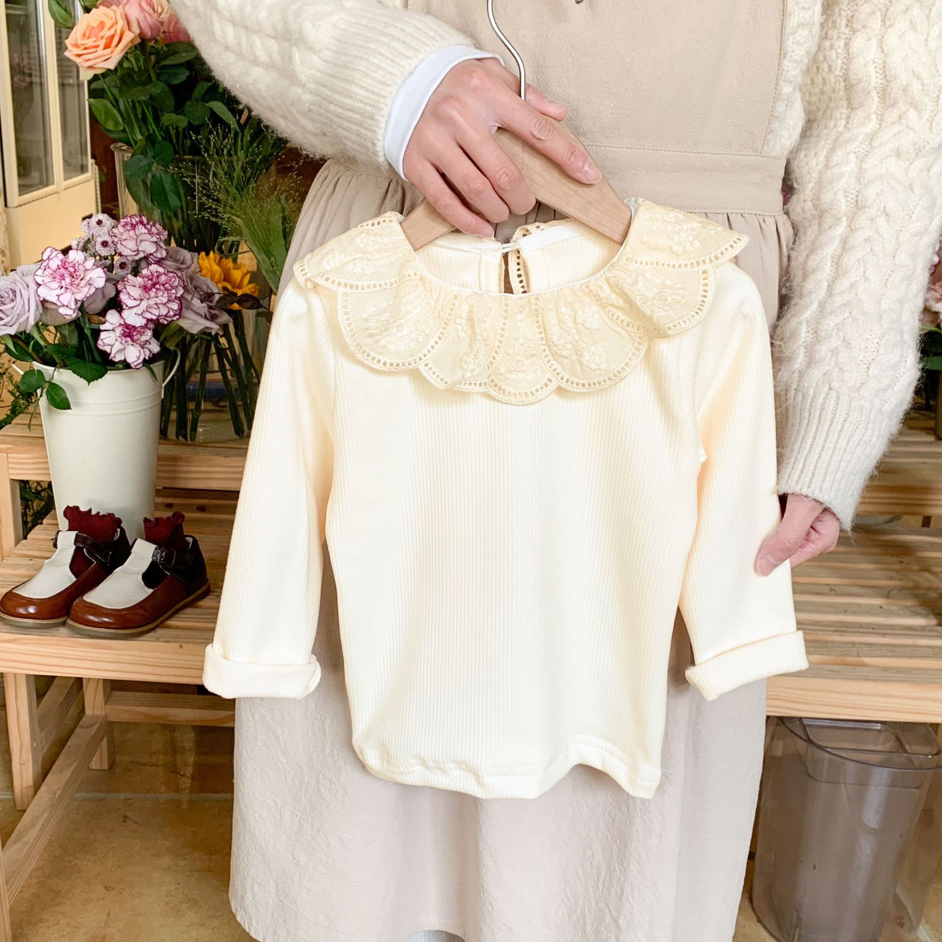 여자 레이스 인형 칼라 바닥 셔츠 가을 새로운 어린이 긴팔 이너 탑 무스 캐시미어 바닥 도매스토어 가기