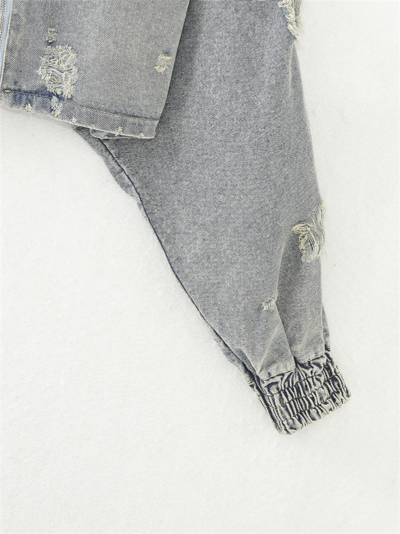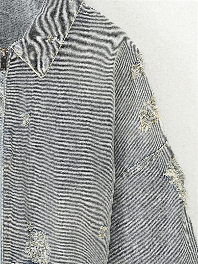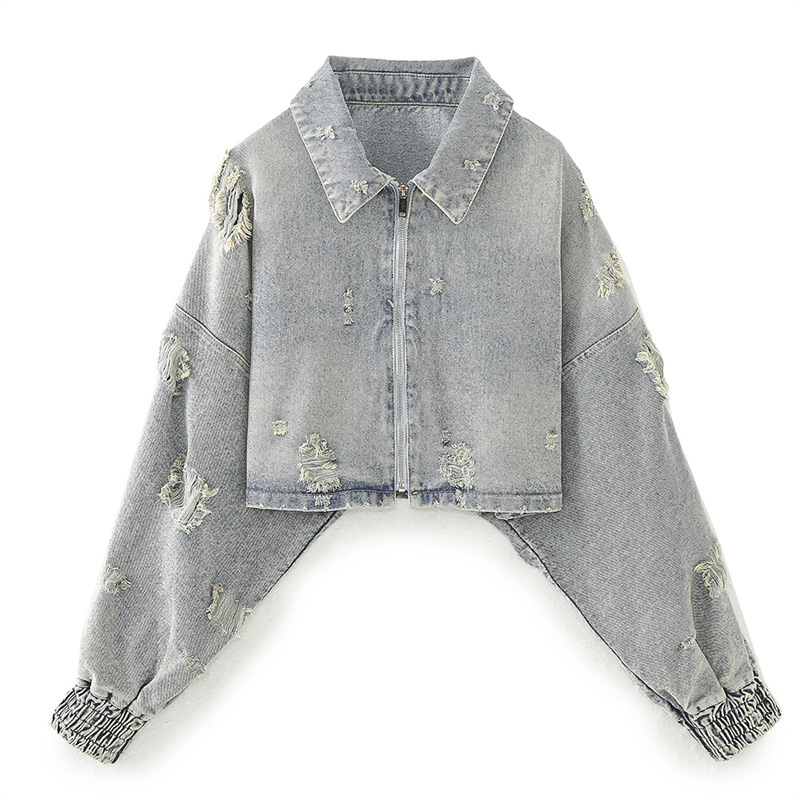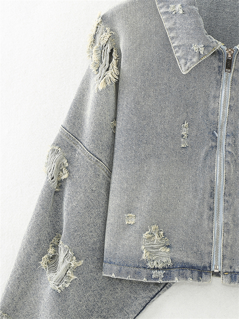2025 여름 새로운 유럽과 미국의 복고풍 크로스 보더 여성 패션 찢어진 장식 데님 짧은 재킷 도매스토어 가기