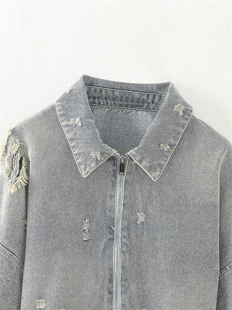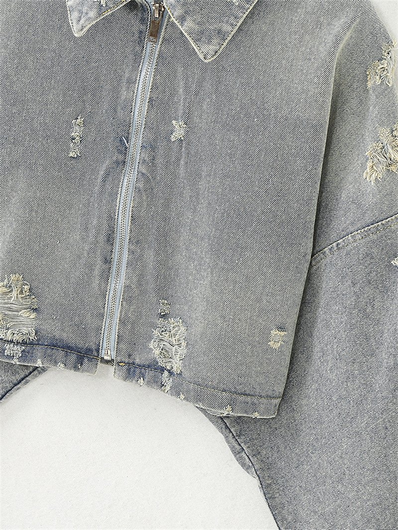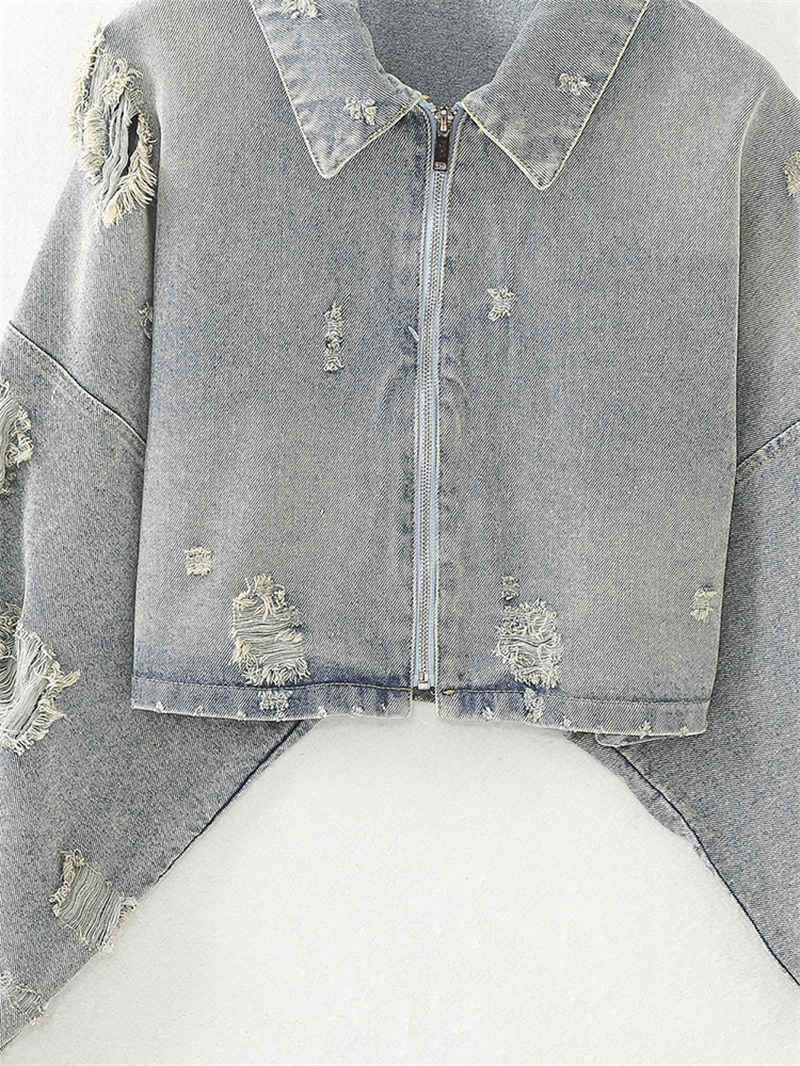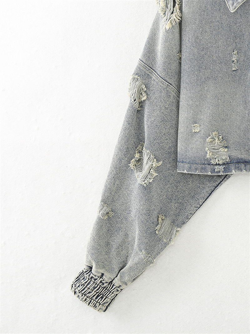 2025 여름 새로운 유럽과 미국의 복고풍 크로스 보더 여성 패션 찢어진 장식 데님 짧은 재킷 도매스토어 가기