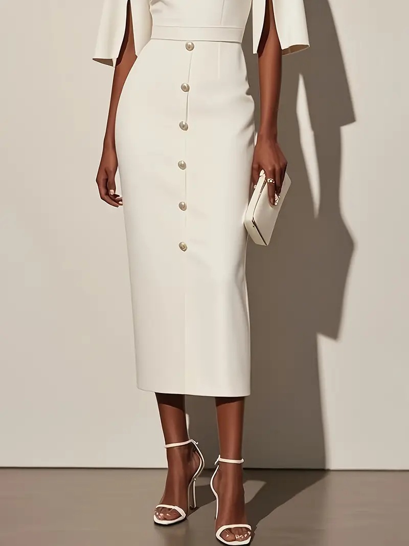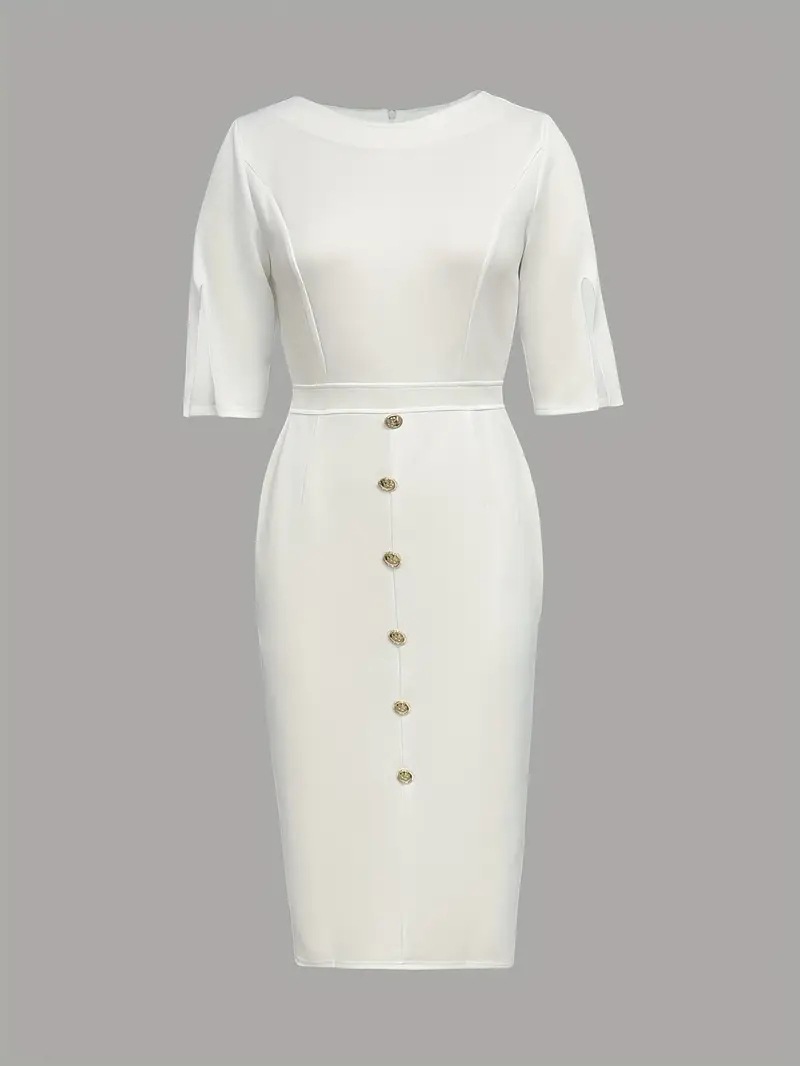 2025 크로스보더 유럽과 미국 아마존 여성을 위한 새로운 여름 솔리드 컬러 라운드 넥 허리 슬릿 버튼 장식 드레스