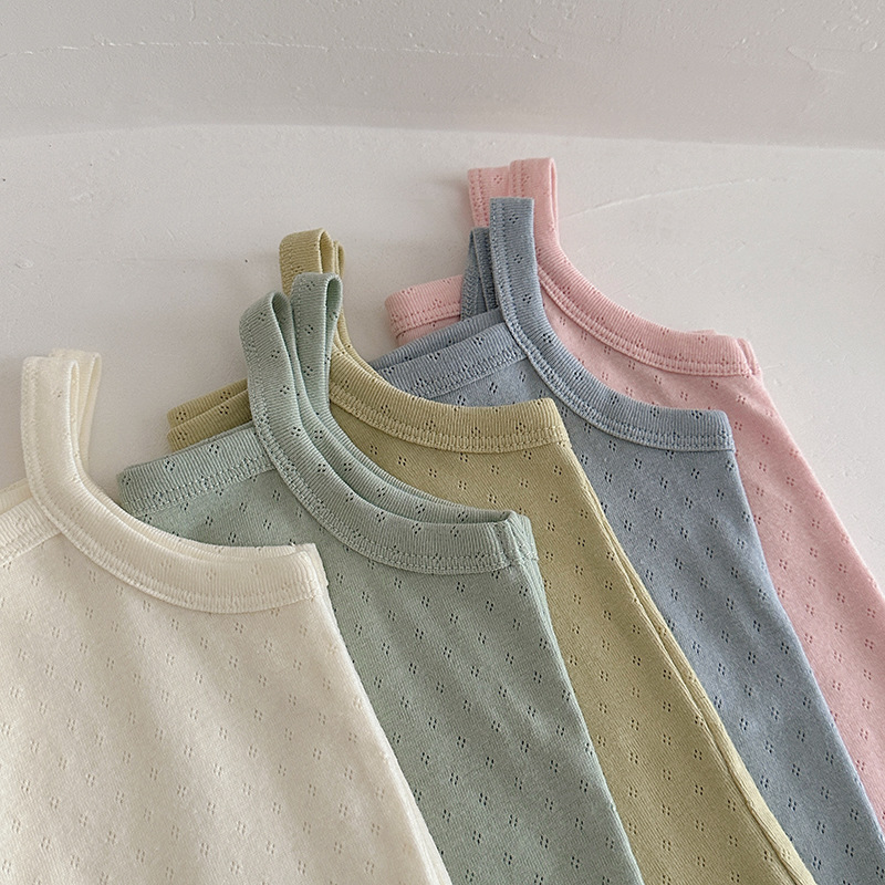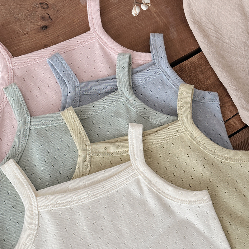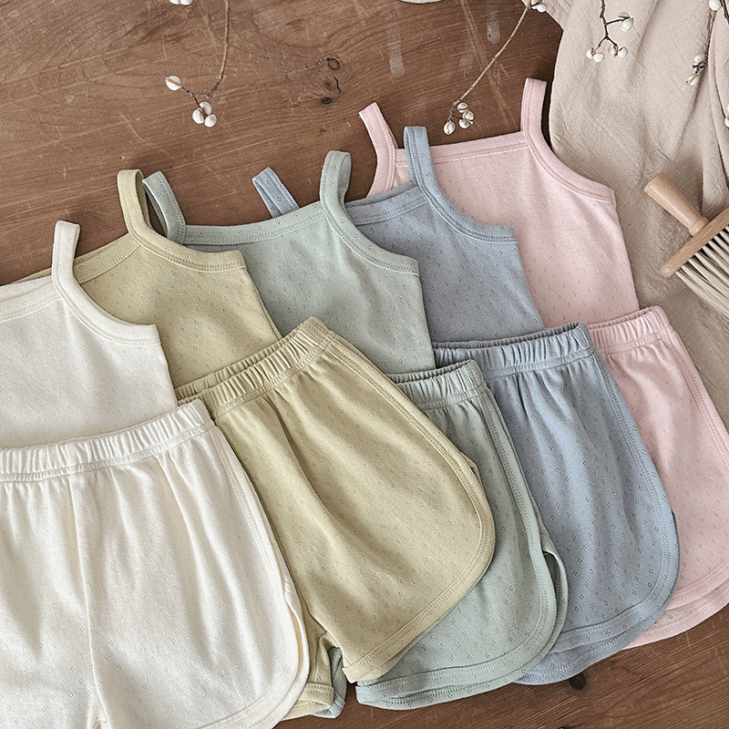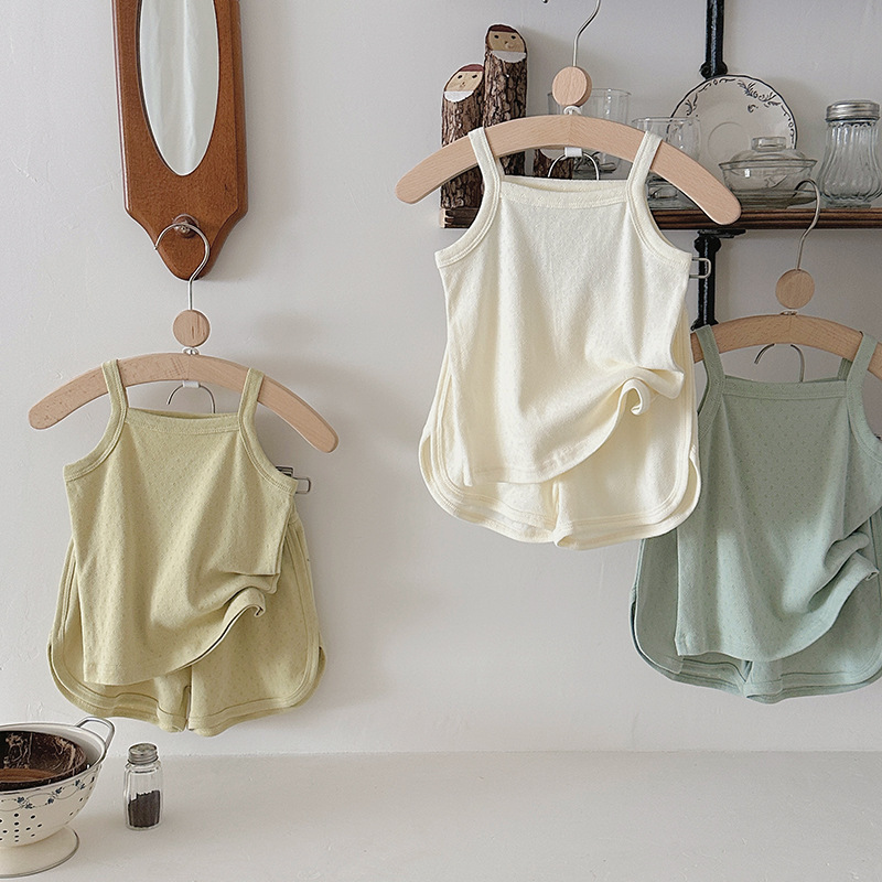 어린이 잠옷 여름 얇은 어린이 가정 의류 한국어 단색 소녀 멜빵 세트 가정 의류 0088A127
