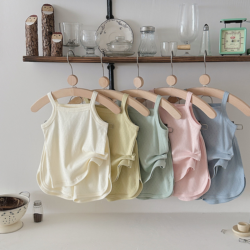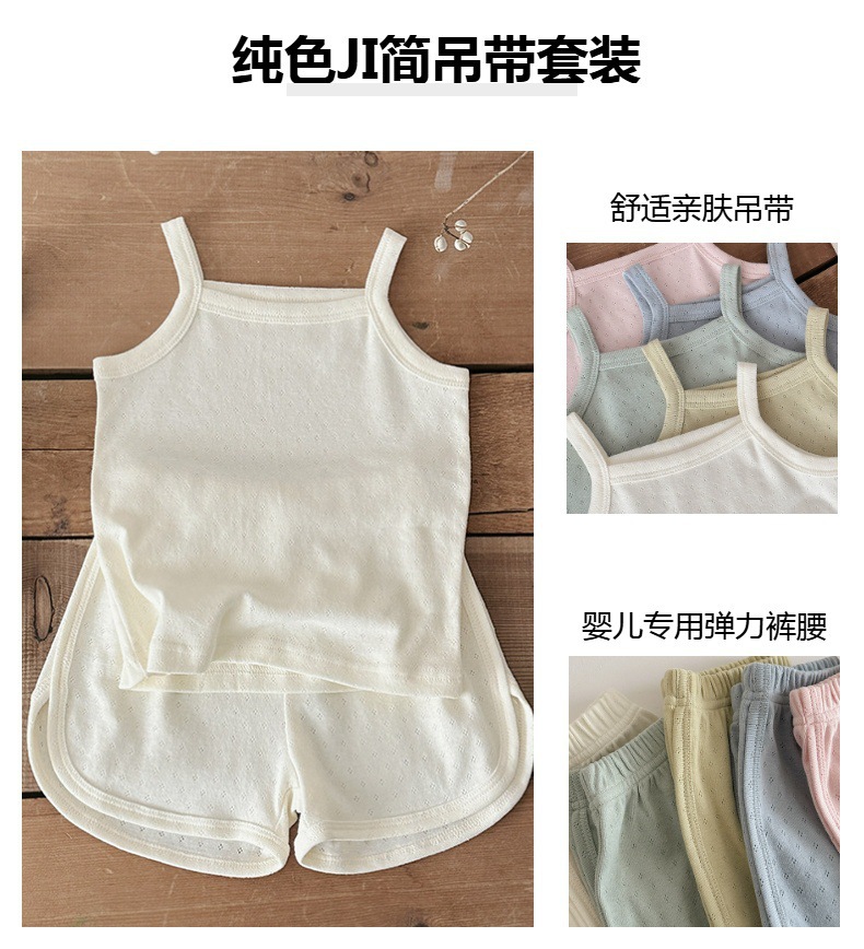 어린이 잠옷 여름 얇은 어린이 가정 의류 한국어 단색 소녀 멜빵 세트 가정 의류 0088A127스토어 가기