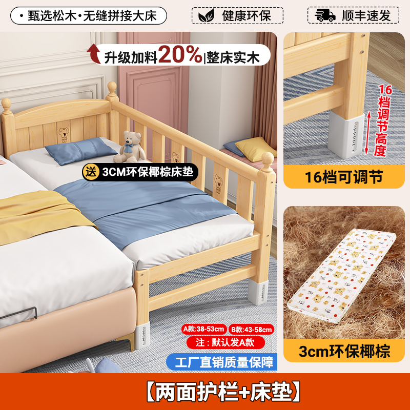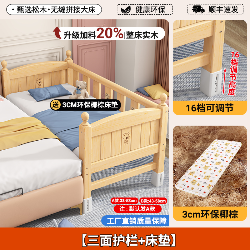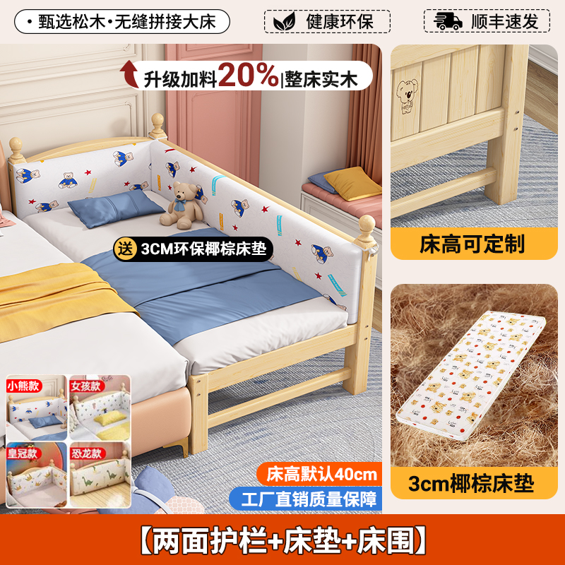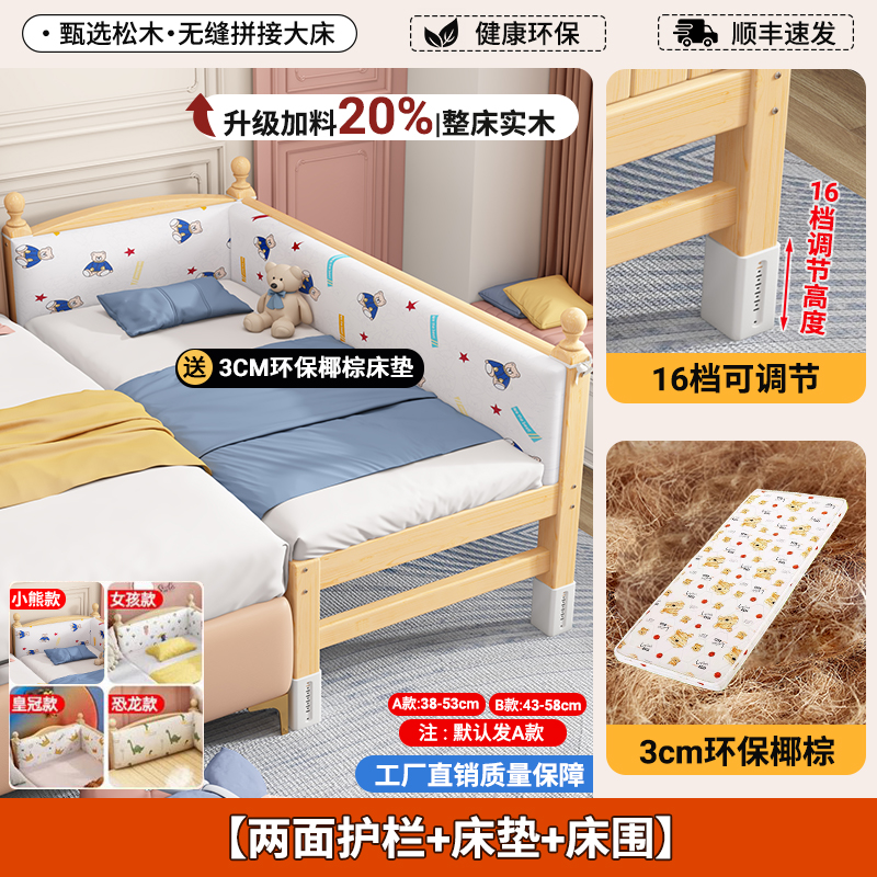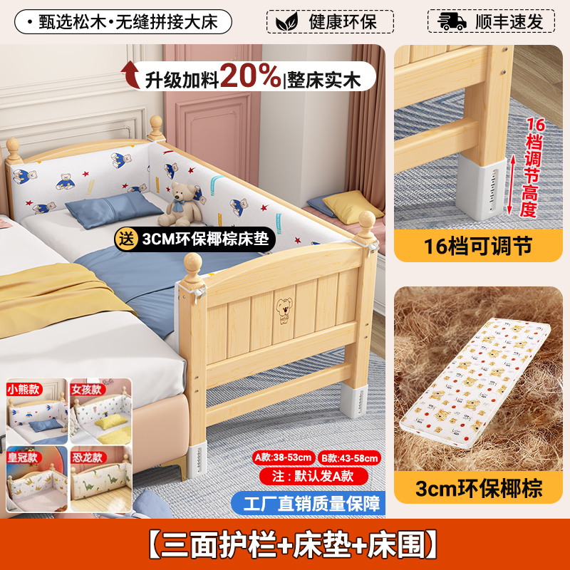 어린이 접합 침대 단단한 나무 유아용 침대 아기 침대 성인은 소녀 공주 침대 옆에 큰 침대를 넓힐 수 있습니다