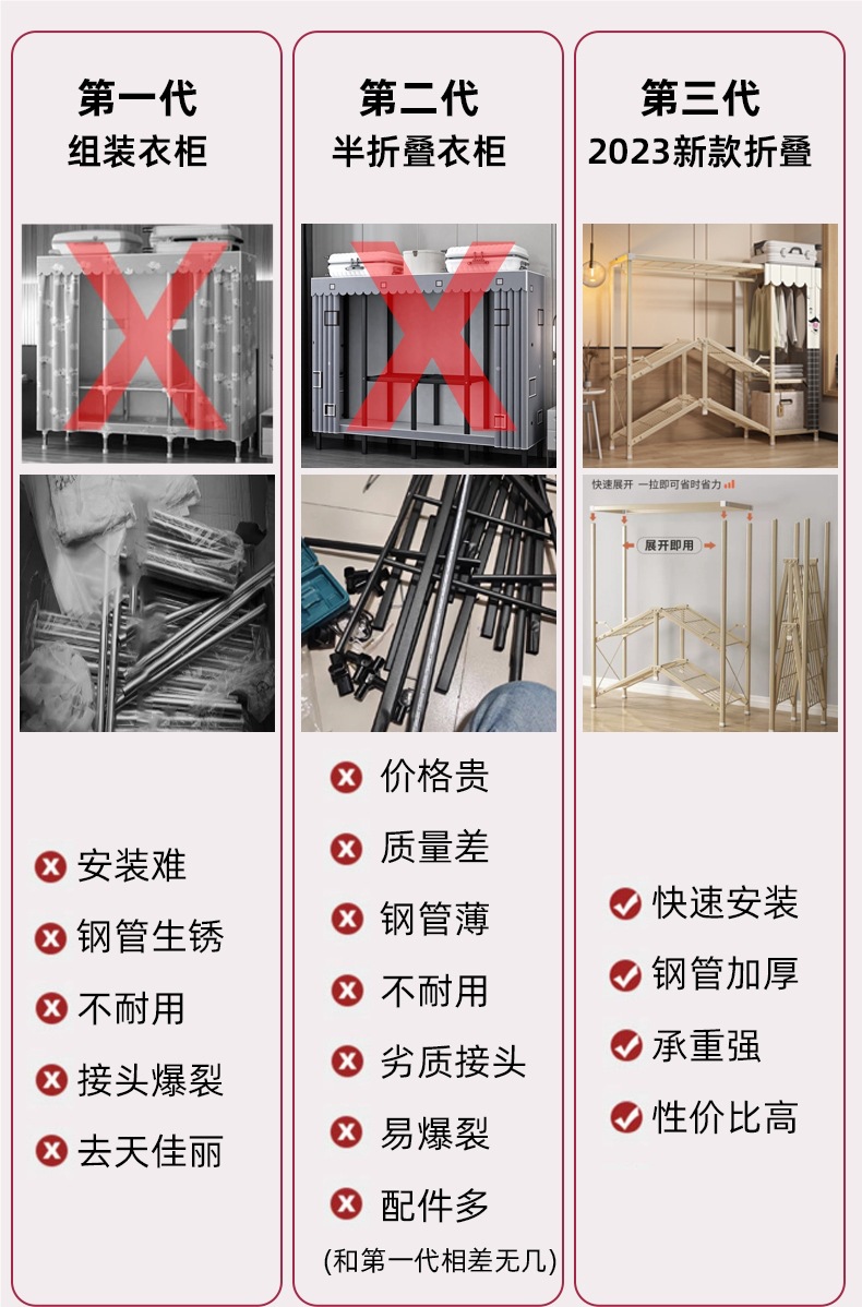 설치가 필요 없는 접이식 옷장, 가정용 침실 수납장, 튼튼하고 내구성이 뛰어난 천 옷장, 임대용 간이 옷장