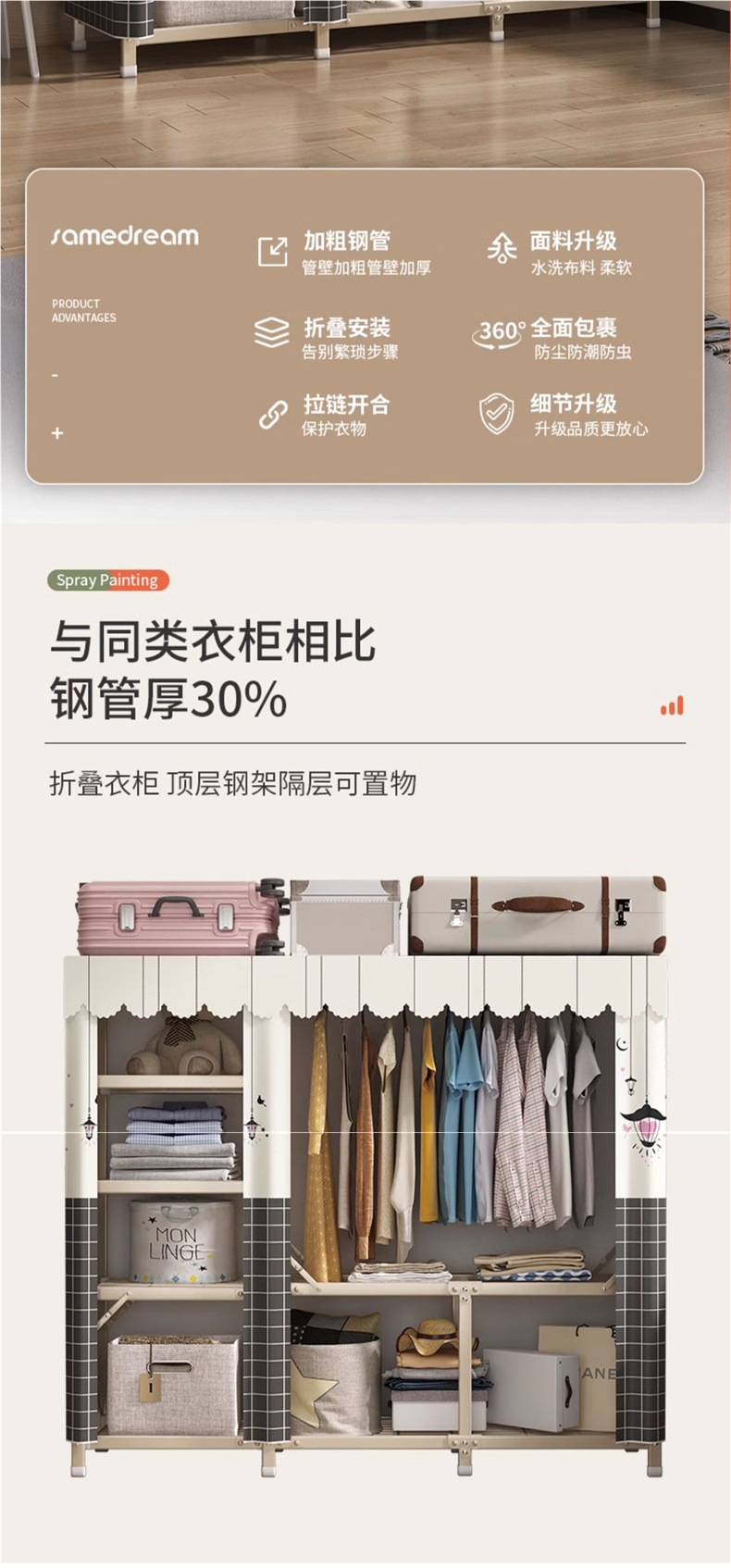 설치가 필요 없는 접이식 옷장, 가정용 침실 수납장, 튼튼하고 내구성이 뛰어난 천 옷장, 임대용 간이 옷장스토어 가기