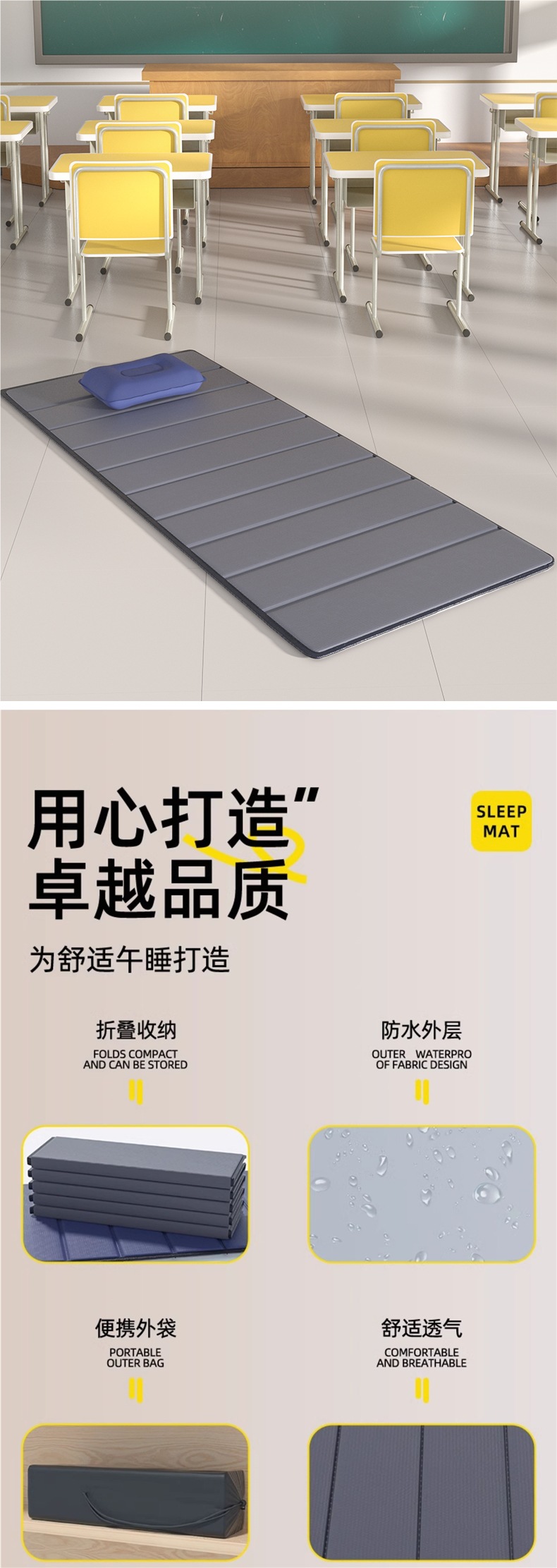 사무실 수면 매트, 점심 시간 접이식 매트, 1인용 휴대용 야외 가정용 방습 낮잠 매트