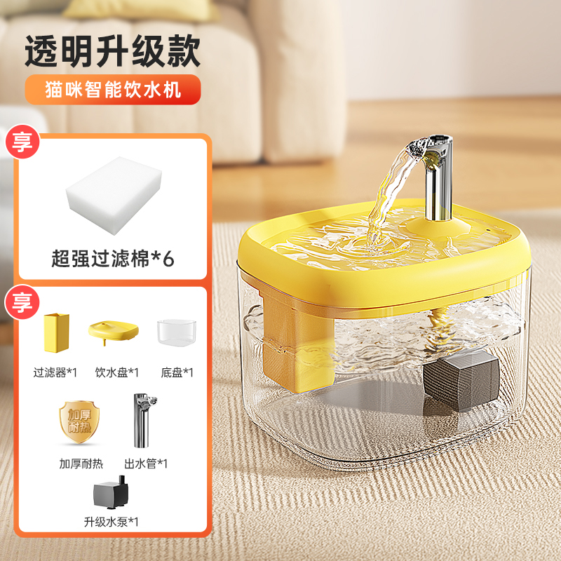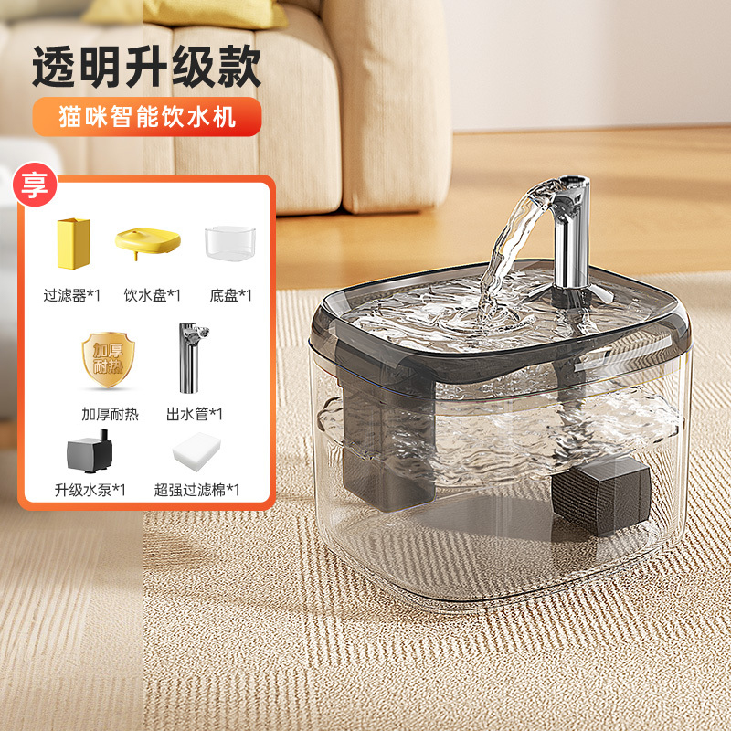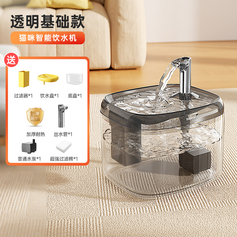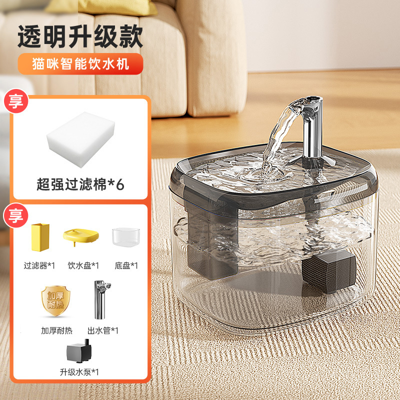 • [새롭게 업그레이드된 건조방지 모델] 완전투명 - 1500ml (무음+순환정수) 필터솜 6개 포함