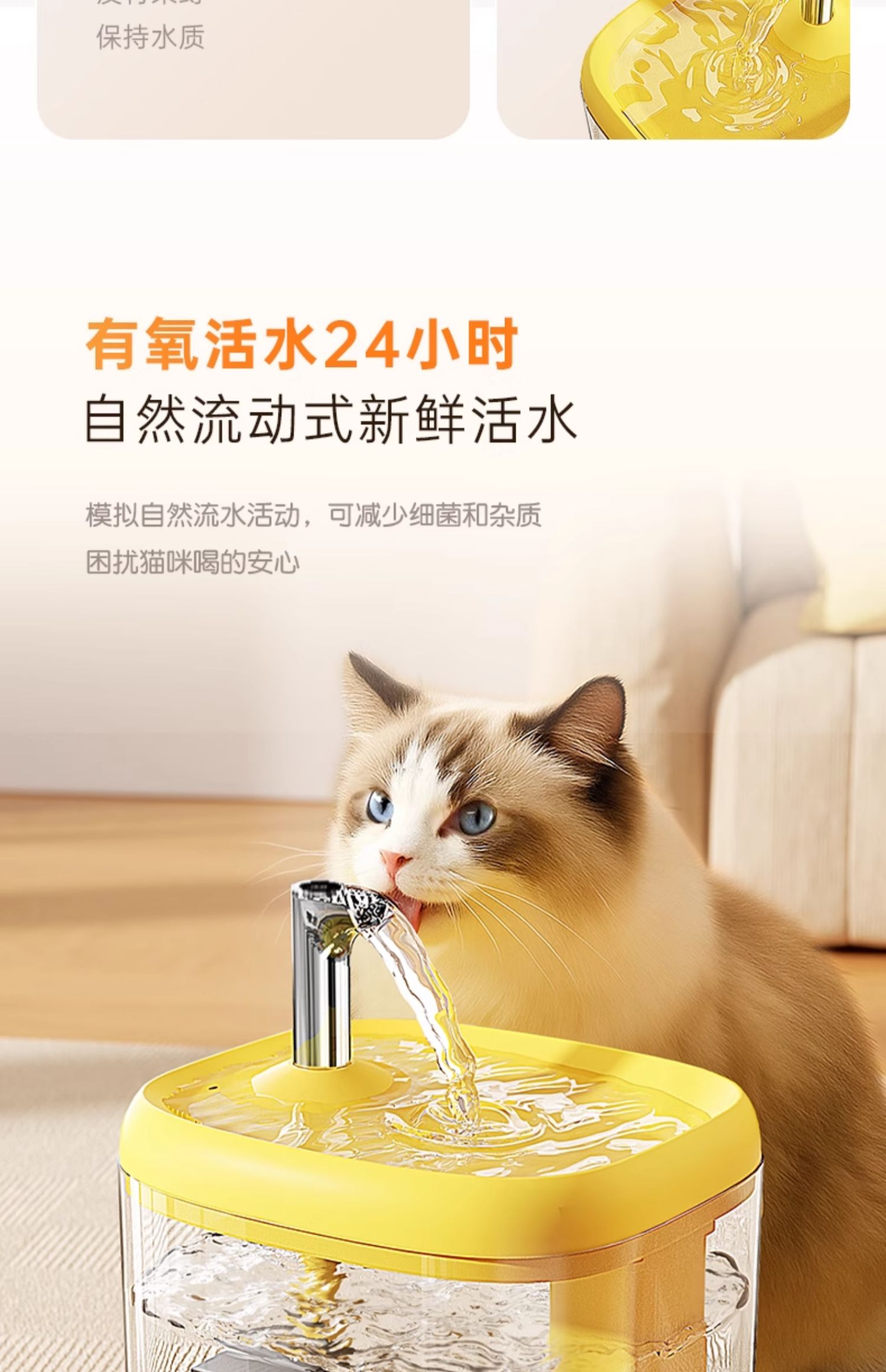 • [새롭게 업그레이드된 건조방지 모델] 크림옐로우-1500ml (무소음+순환정수) 필터솜 6개 포함