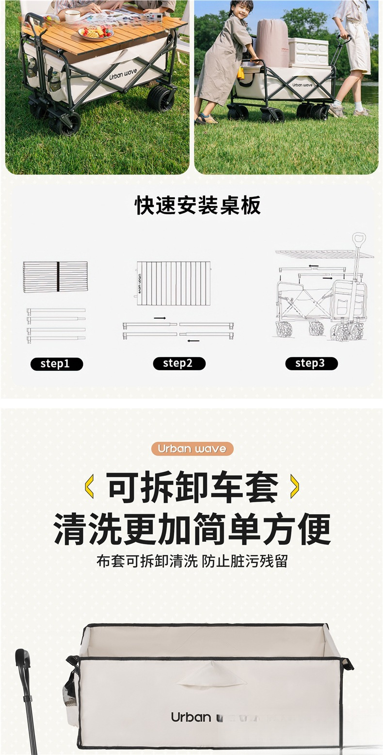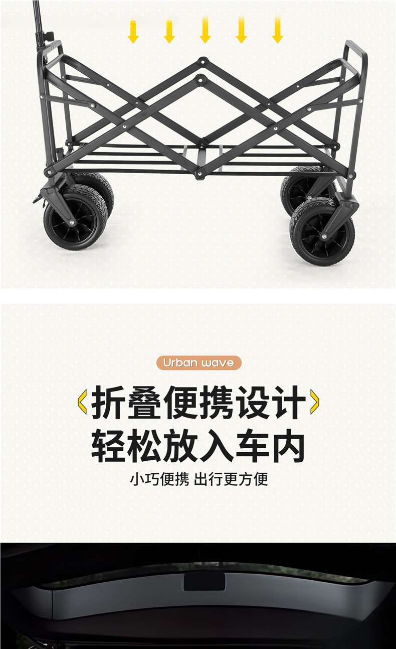 어린이를 위한 도시 웨이브 캠핑 트롤리, 접이식 야외 캠핑 여행 피크닉 트롤리, 소형 트레일러스토어 가기