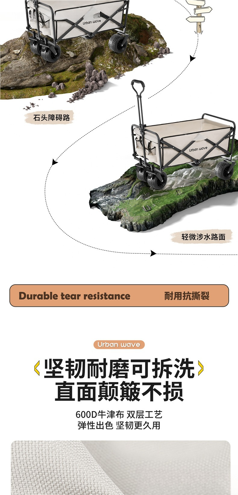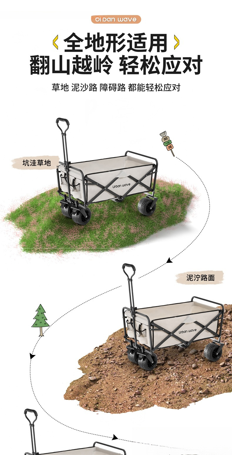 어린이를 위한 도시 웨이브 캠핑 트롤리, 접이식 야외 캠핑 여행 피크닉 트롤리, 소형 트레일러
