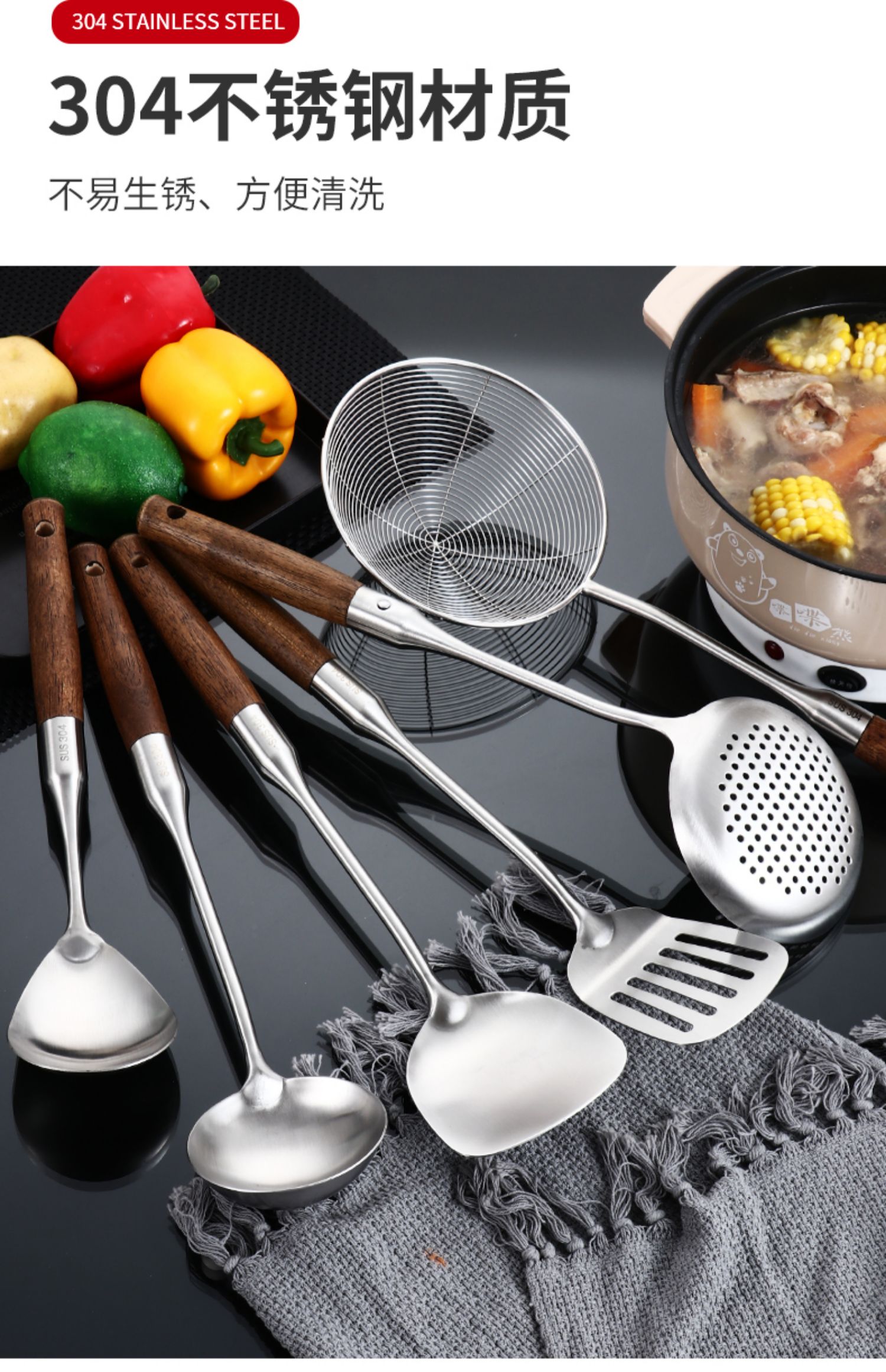 두꺼운 304 스테인레스 스틸 주걱, 요리용 철제 주걱, 가정용 주방 화상 방지 요리용 주걱, 소쿠리, 주방 용품 Xichen