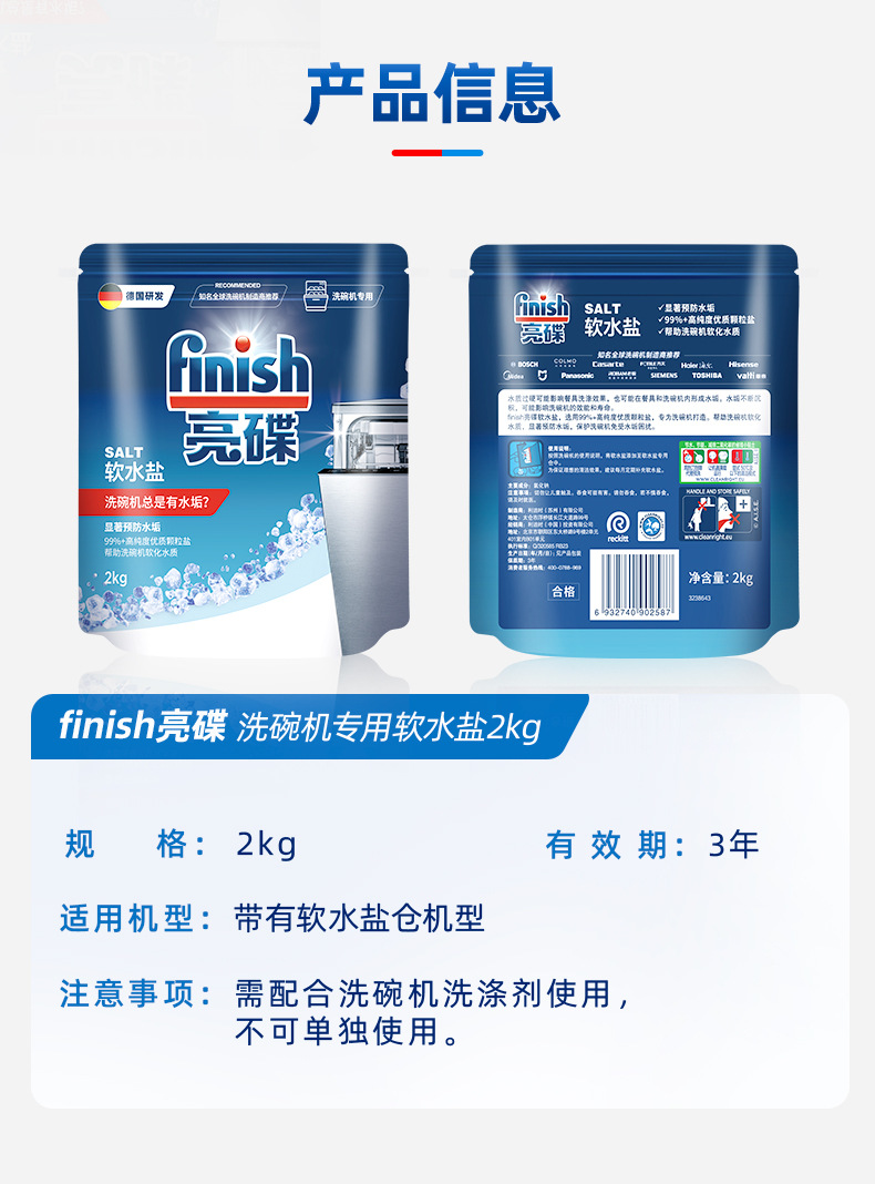 [마무리 광택] 광택 연화수소염 2kg 식기세척기 전용 물때 제거 및 살균 가정용