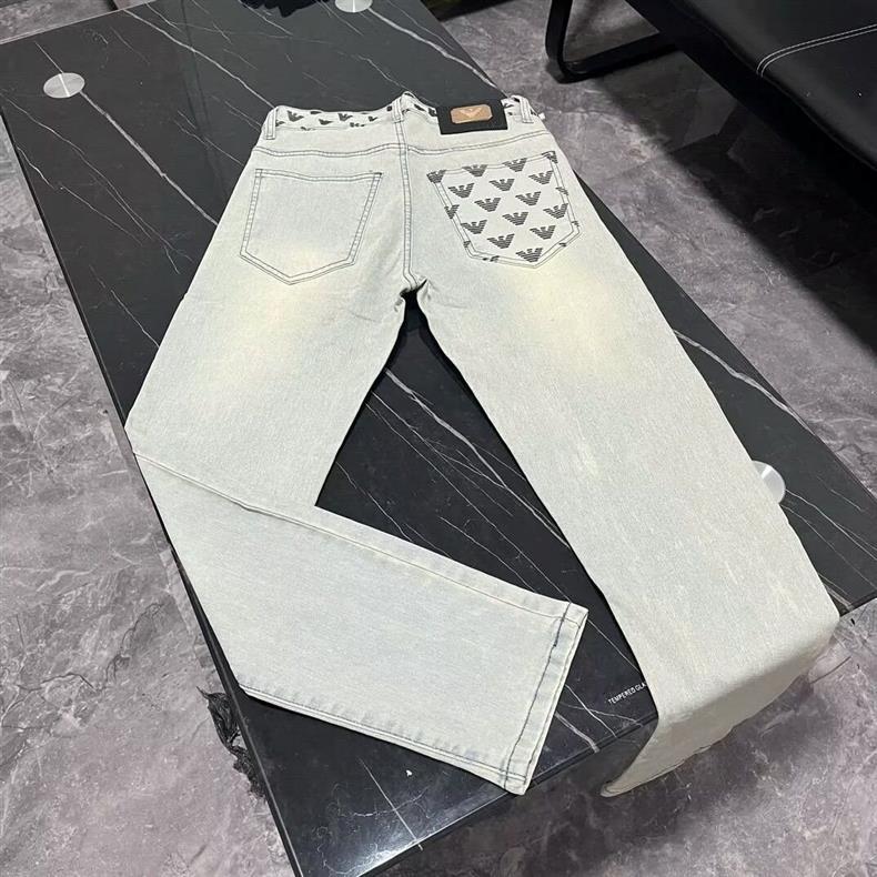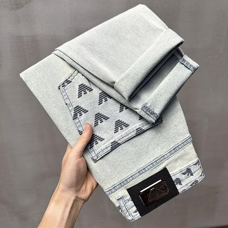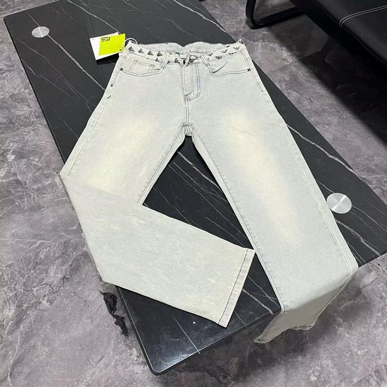 아메리칸 로우 엣지 바이브 청바지 2024 하이 스트리트 남성 여름 스트레치 트렌디 청바지 워시드 올드 그레이스토어 가기