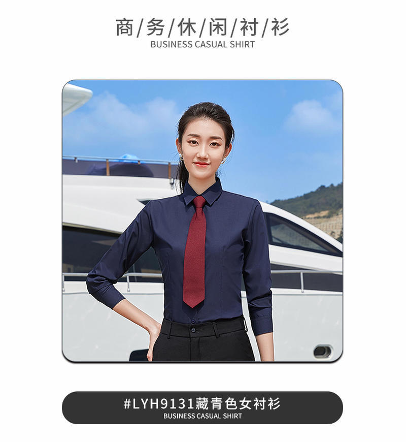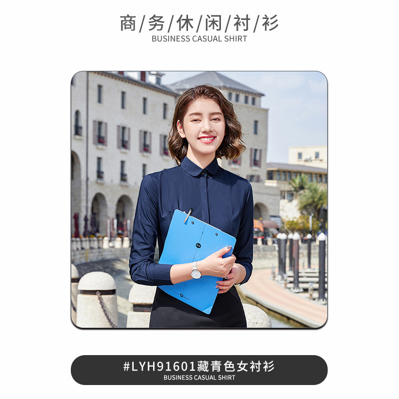 • 네이비 블루 여성용 긴팔 DG-ZZH91601 [주름개선, 형태유지, 건조함, 통기성, 부드러움, 매끄러움]