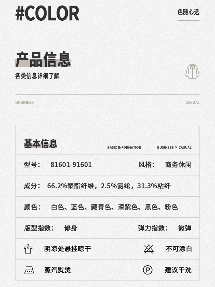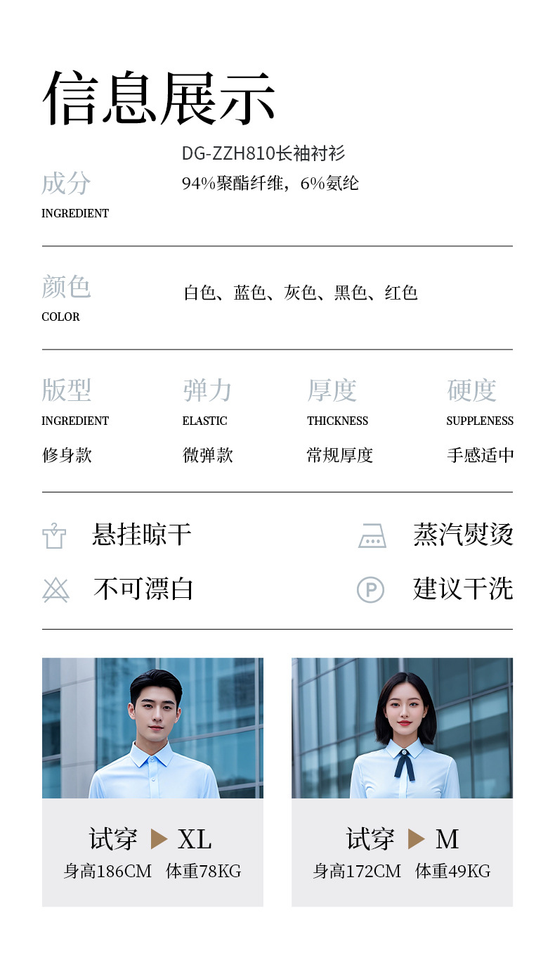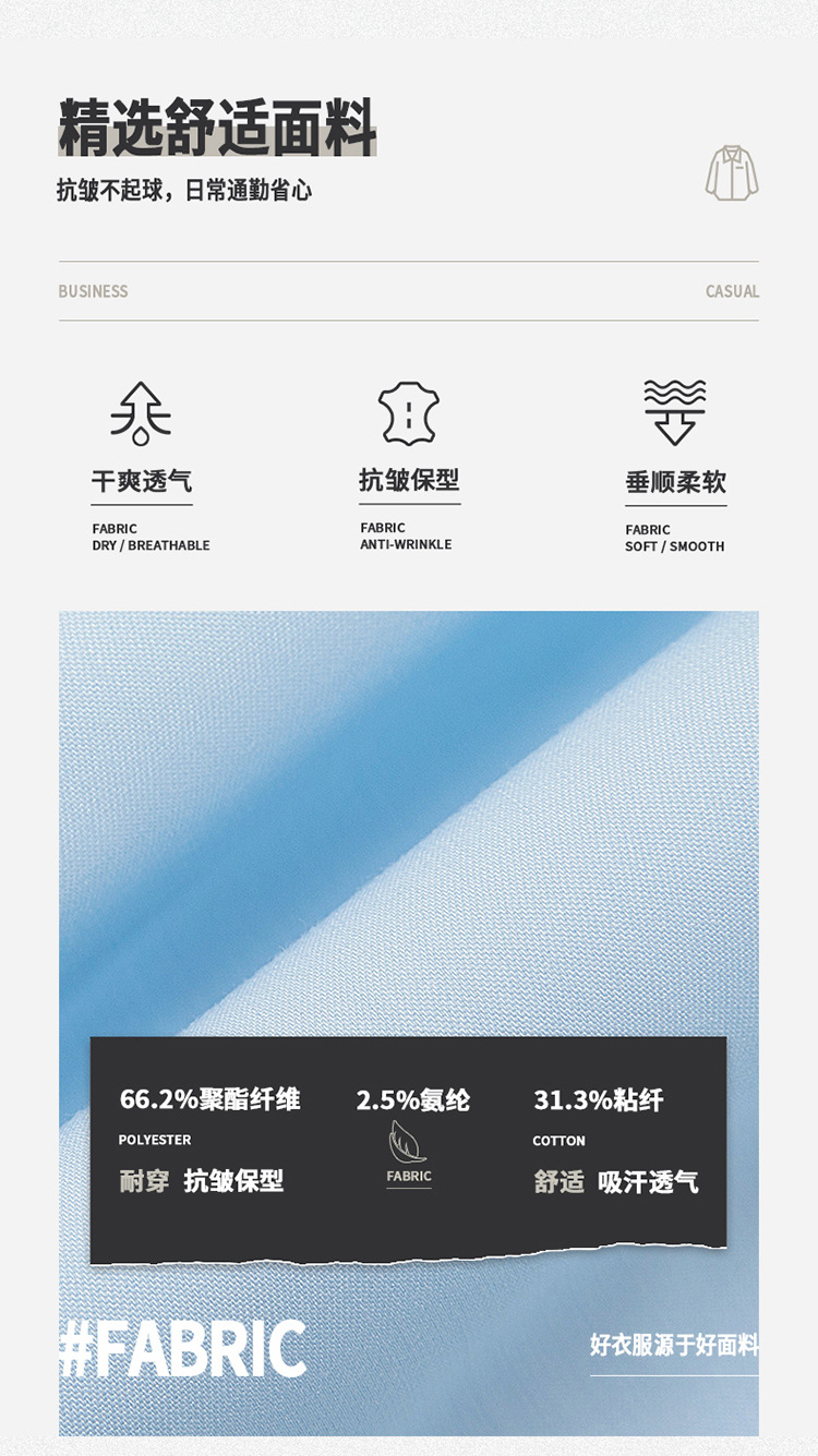 • 백인 남성용 긴팔 DG-ZZH81601 [주름개선, 형태유지, 건조함, 통기성, 부드러움, 매끄러움]