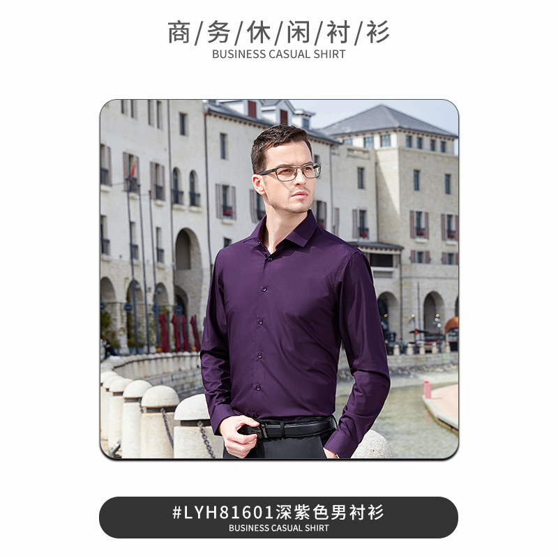 • 다크 퍼플 남성용 긴팔 DG-ZZH81601 [주름개선, 형태유지, 건조함, 통기성, 부드러움, 매끄러움]