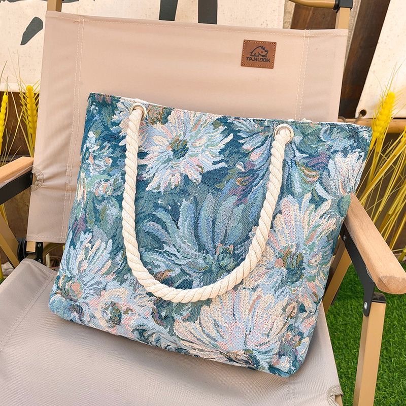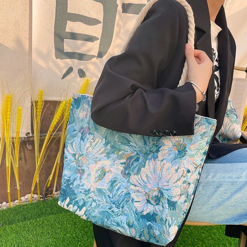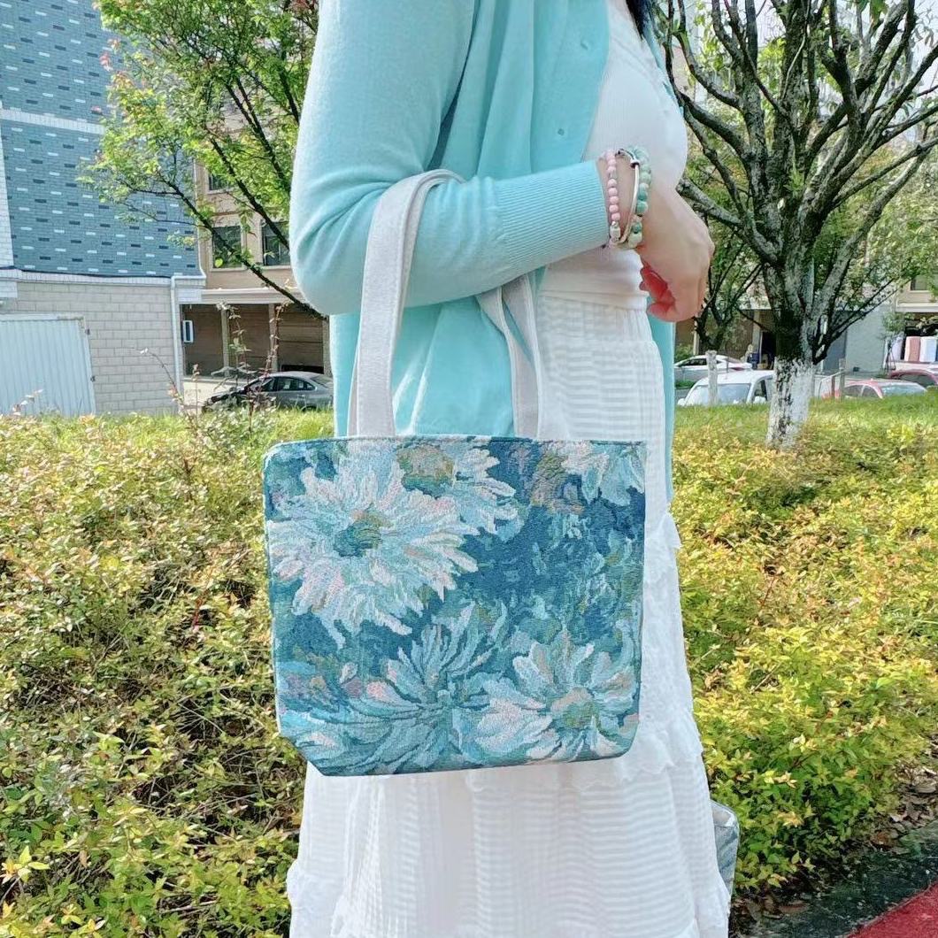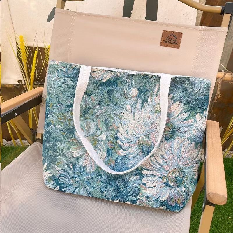 새로운 모네 가든 패턴 다목적 복고풍 패션 대용량 자수 가방 어깨 핸드백 외출 패션스토어 가기
