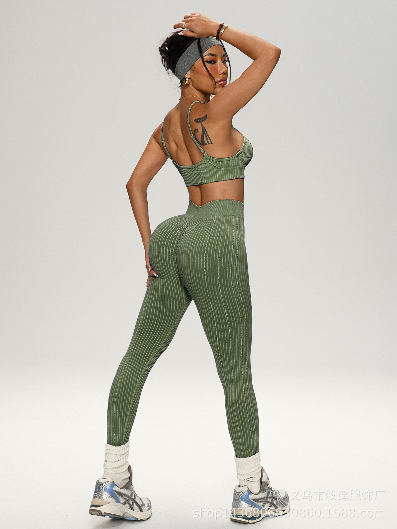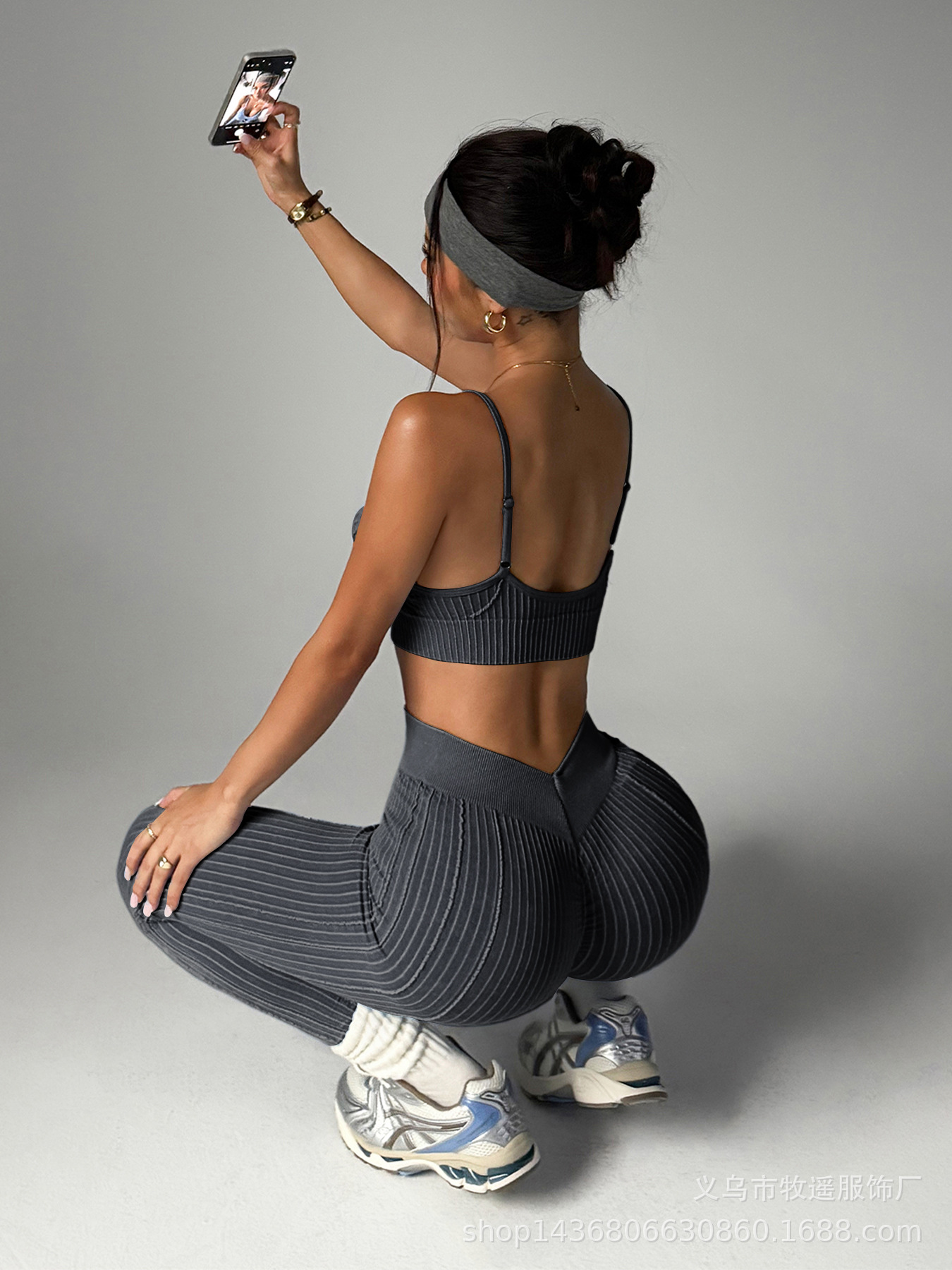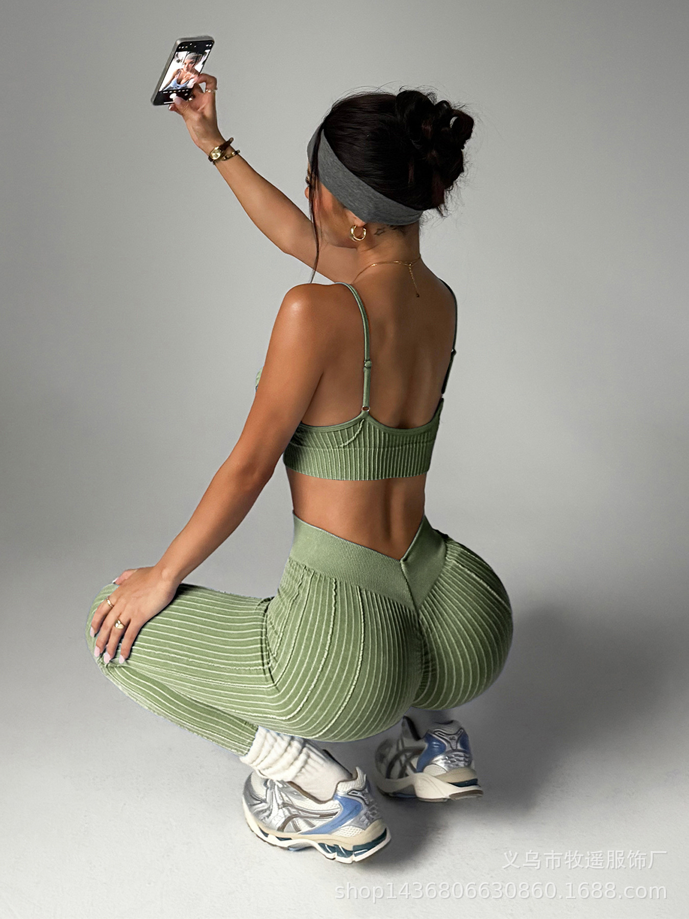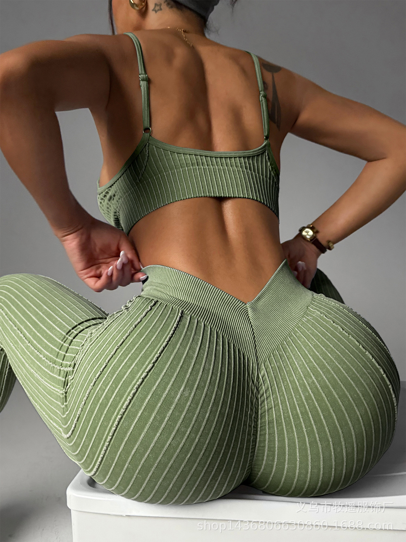 유럽과 미국의 모래 세척 복숭아 엉덩이 원활한 요가 바지 정장 여성 스포츠 피트니스 러닝 충격 방지 조끼 바지 투피스 세트스토어 가기