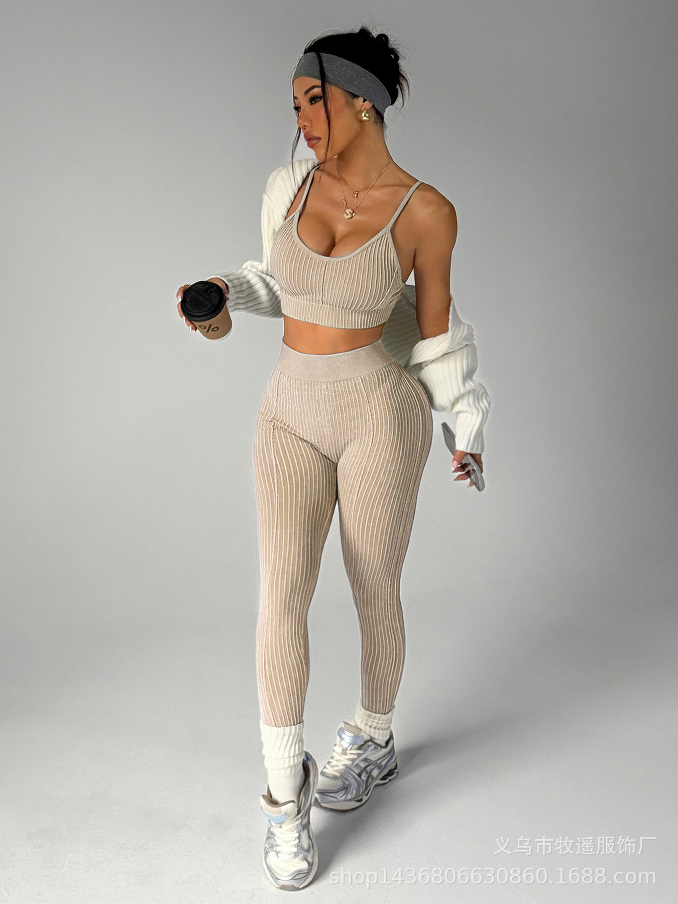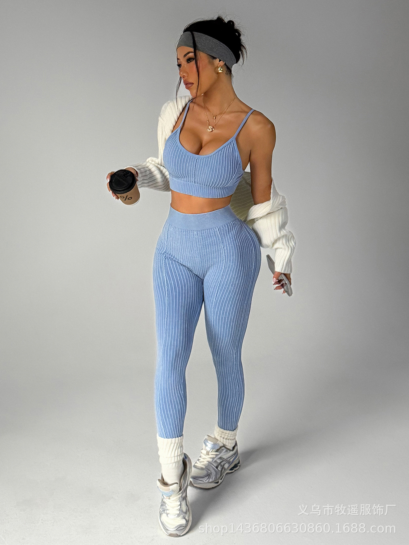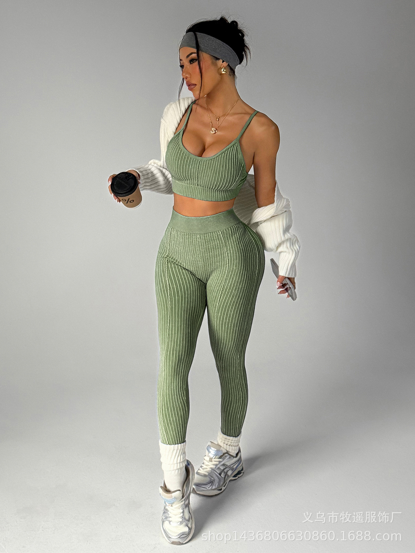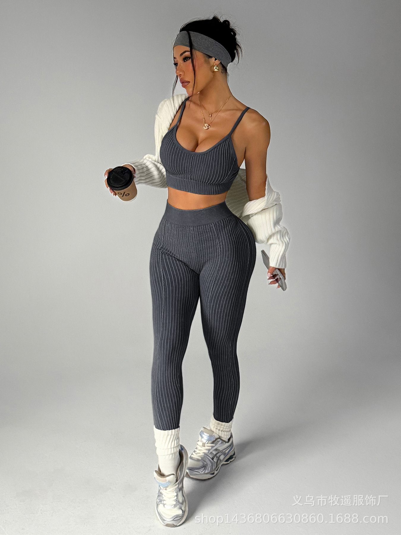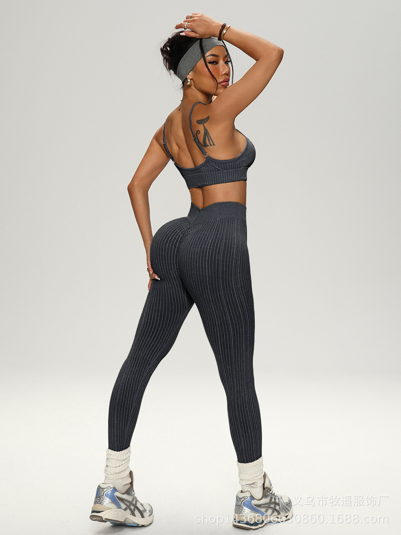 유럽과 미국의 모래 세척 복숭아 엉덩이 원활한 요가 바지 정장 여성 스포츠 피트니스 러닝 충격 방지 조끼 바지 투피스 세트스토어 가기