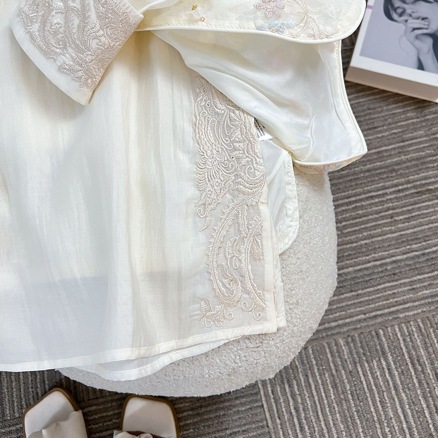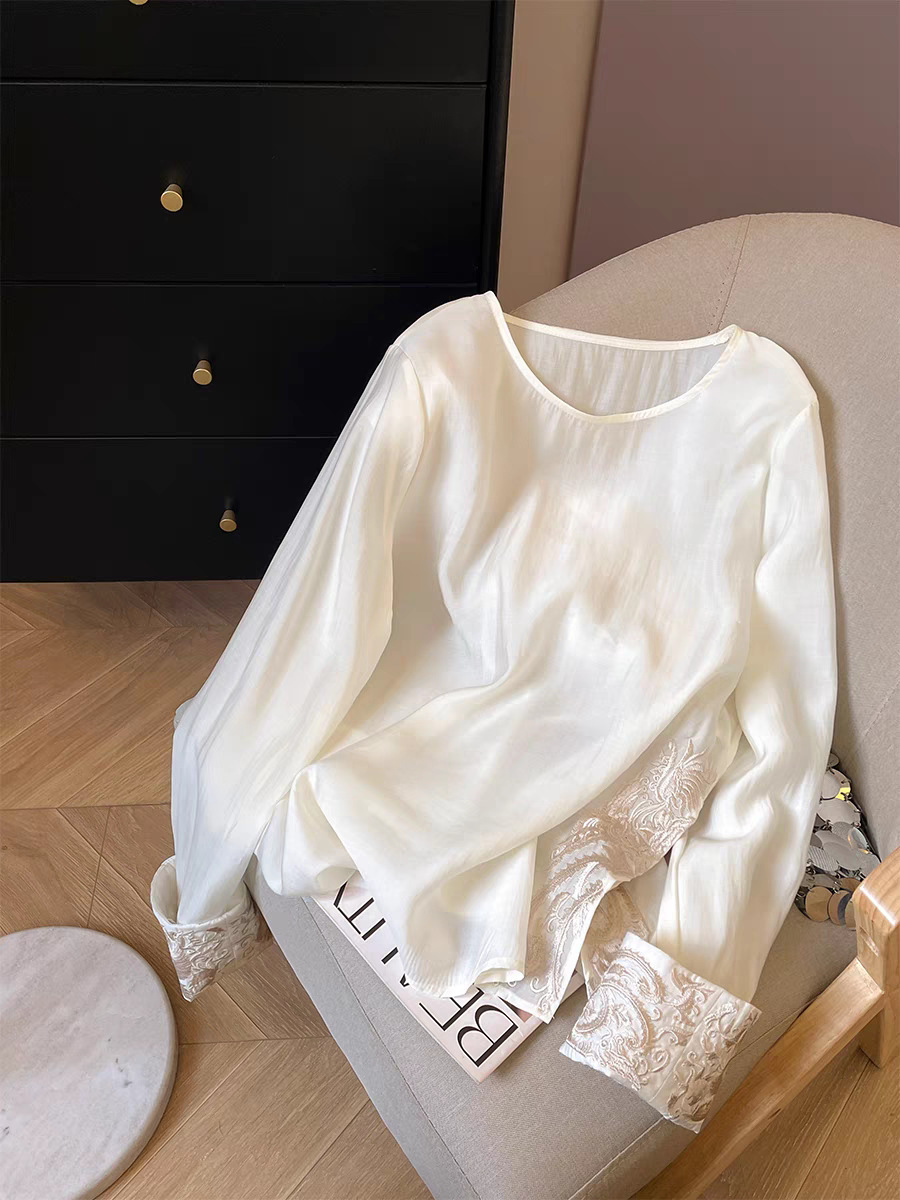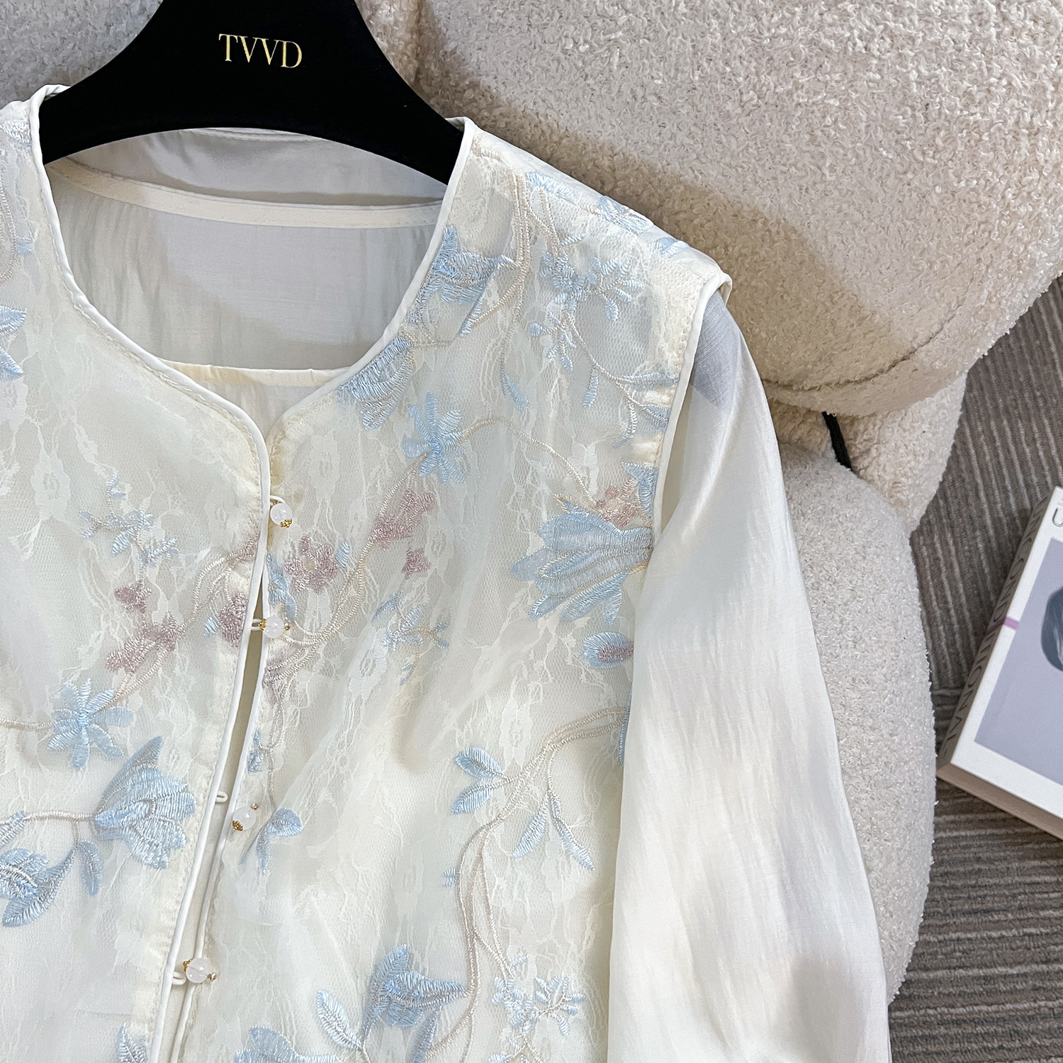 여성을 위한 새로운 스타일의 중국 스타일 자수 자카드 짧은 조끼, 루즈하고 슬림하며 세련된 이너 탑, 동남아 및 기타 긴팔스토어 가기