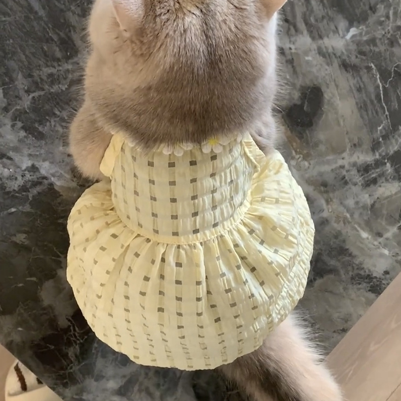 고양이 여름옷, 작은 치마, 털빠짐 방지, 귀여운 인스 골드 그라데이션 래그돌 고양이, 브리티시 쇼트헤어 여름 서스펜더 스커트