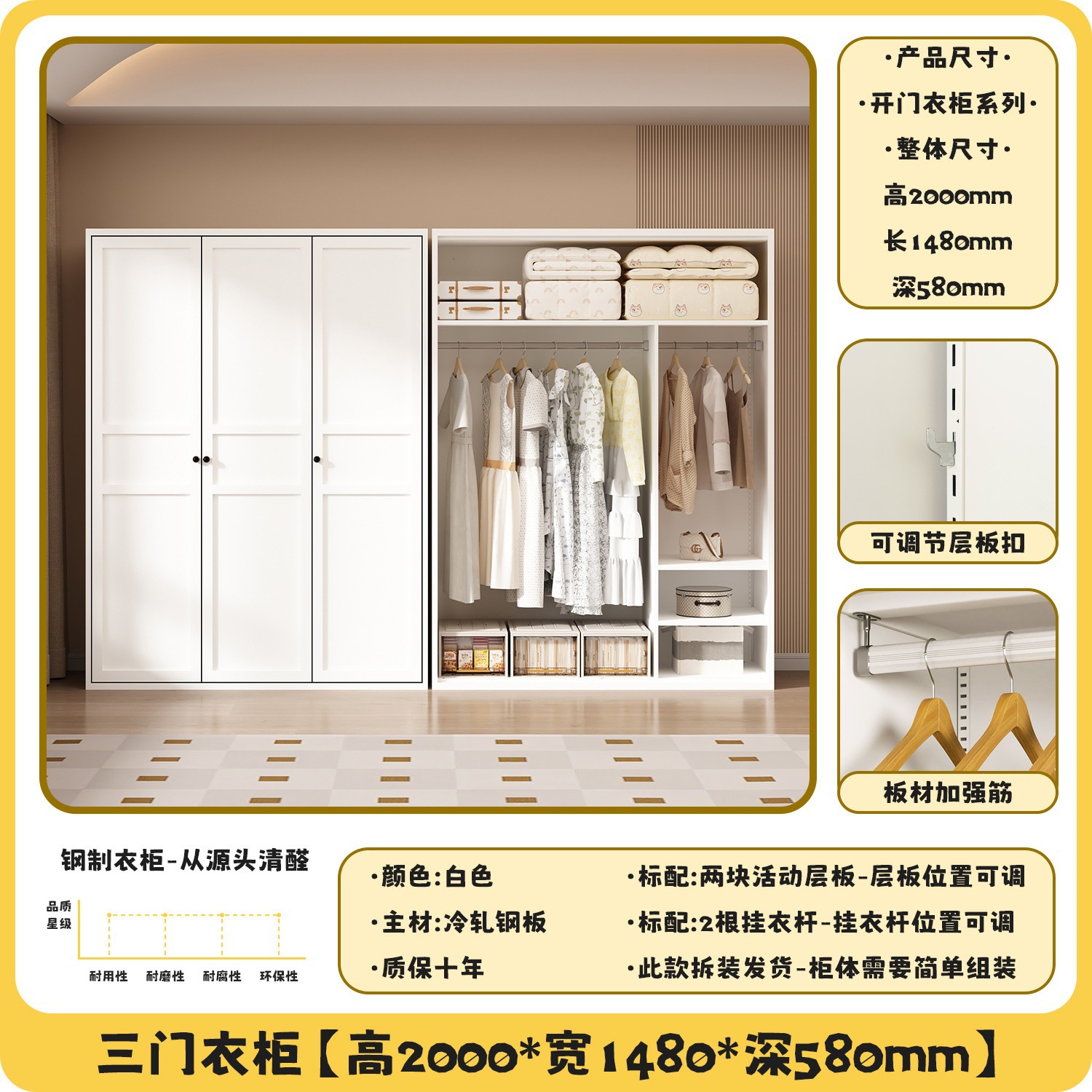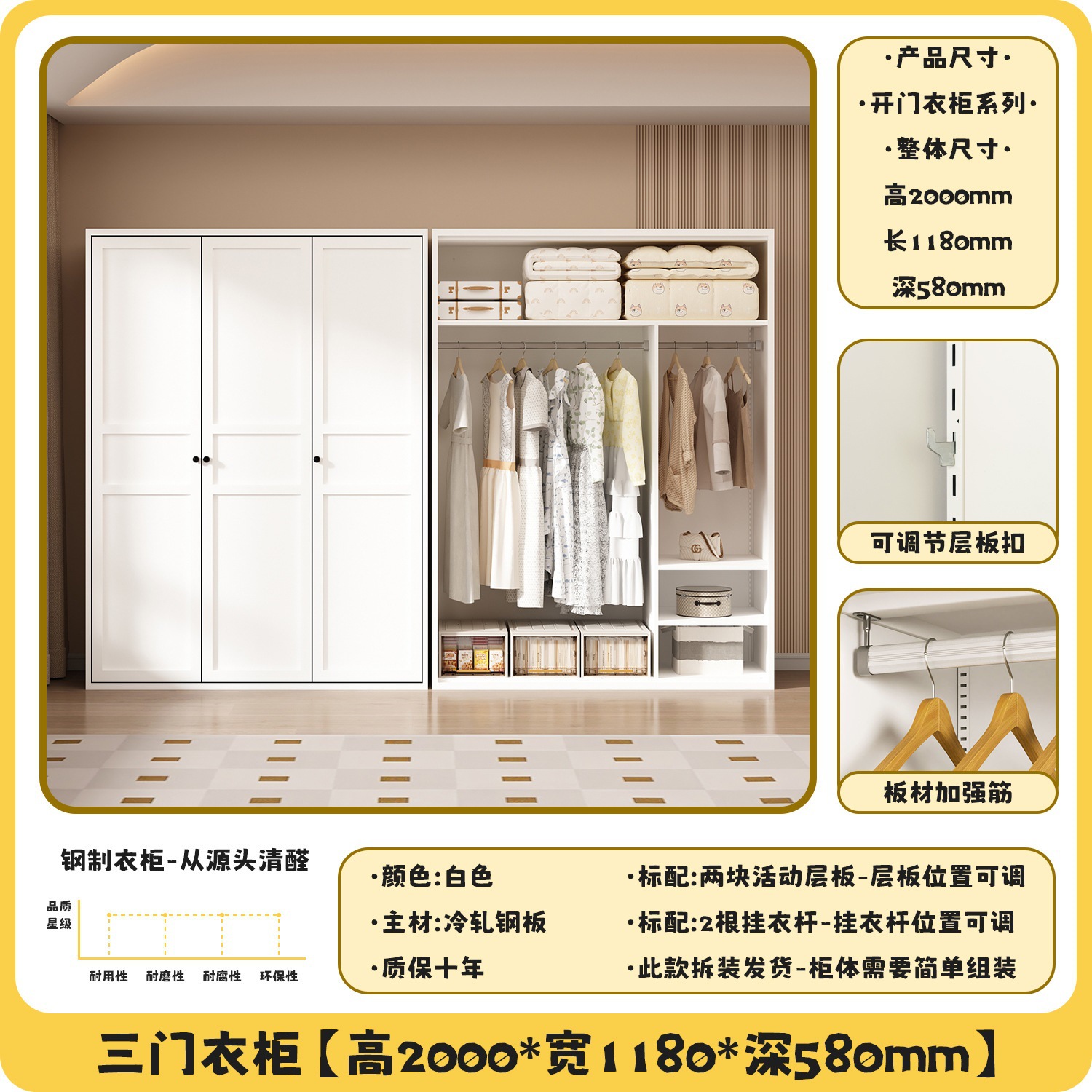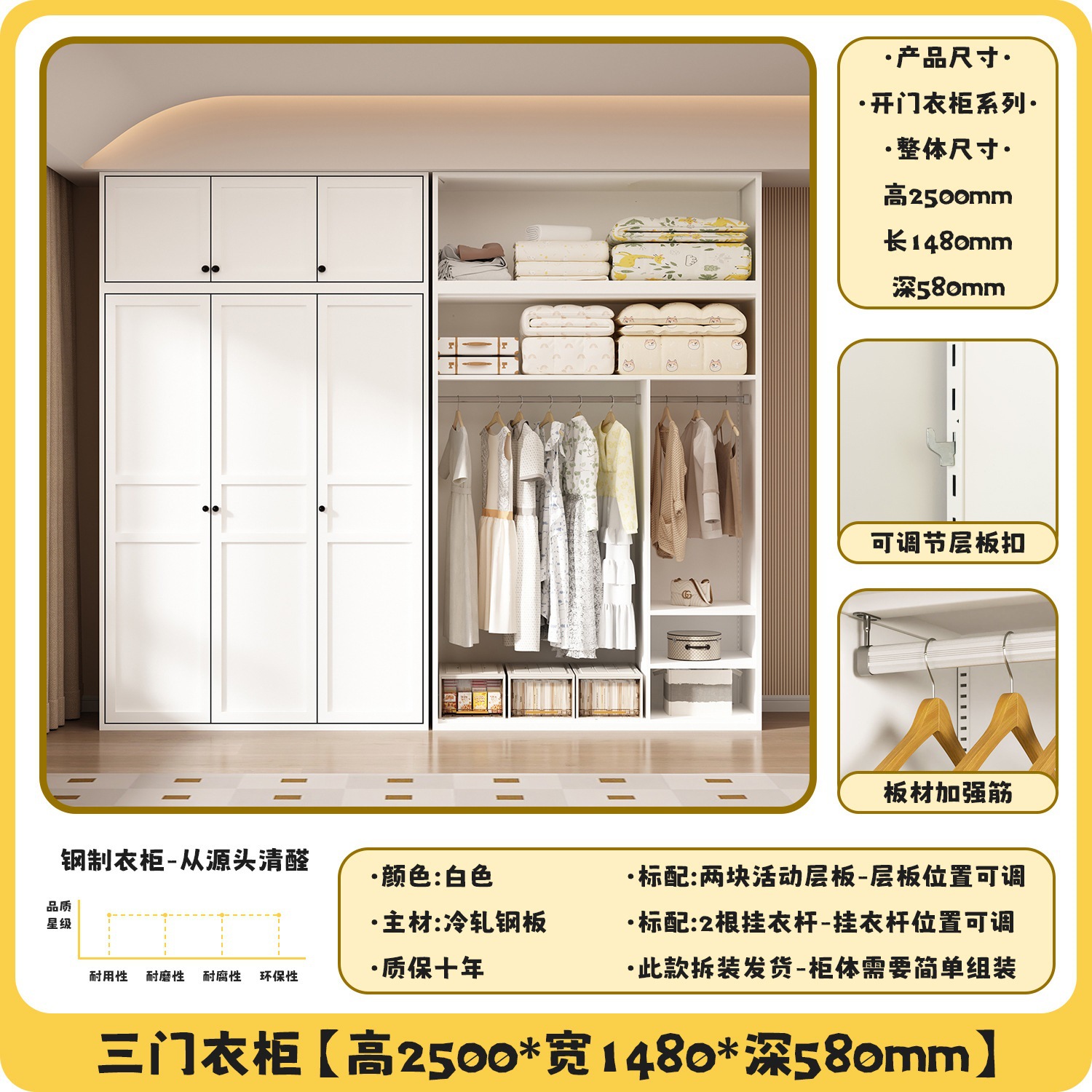 두꺼운 2025 새로운 철 옷장 홈 침실 현대 간단한 유럽 스타일의 금속 스토리지 스틸 옷장