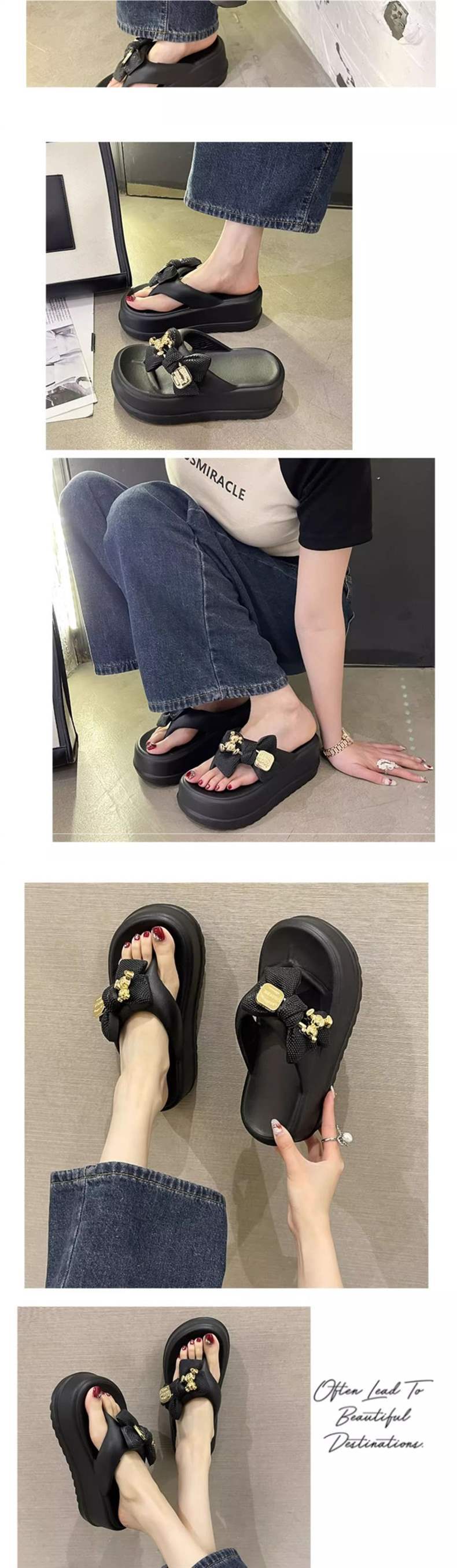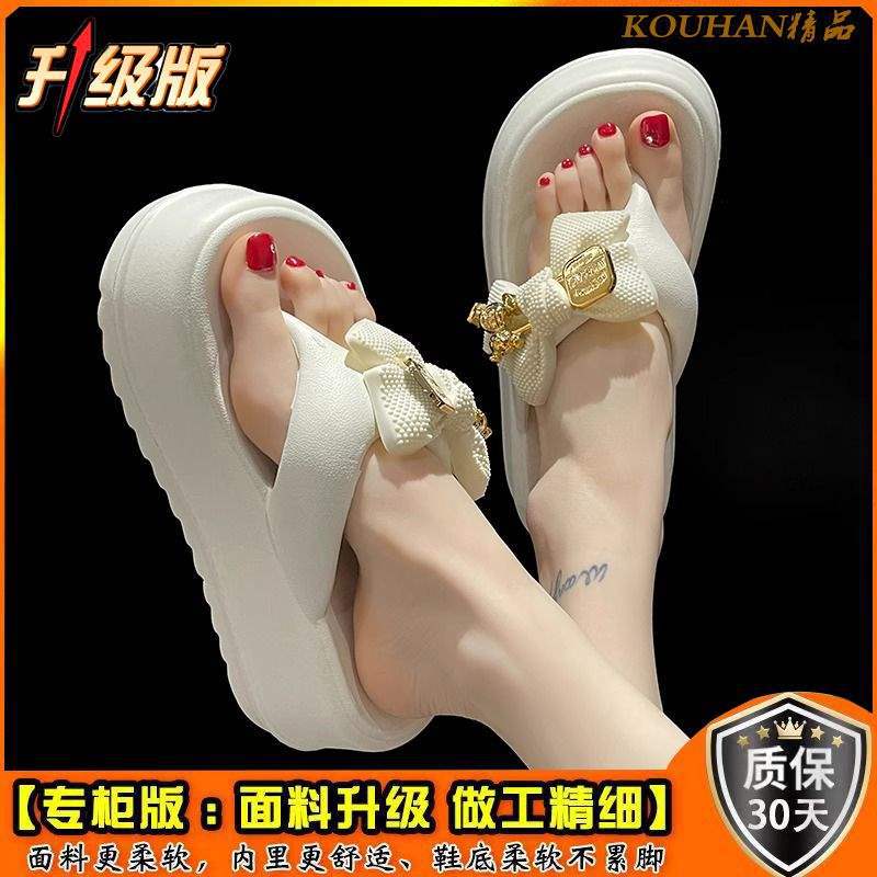 여름 아우터로 입기 좋은 여성용 인터넷 연예인 리본 하이힐 슬리퍼 2025 신상 두꺼운 밑창 미끄럼 방지 슬리퍼스토어 가기