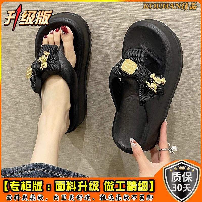 여름 아우터로 입기 좋은 여성용 인터넷 연예인 리본 하이힐 슬리퍼 2025 신상 두꺼운 밑창 미끄럼 방지 슬리퍼