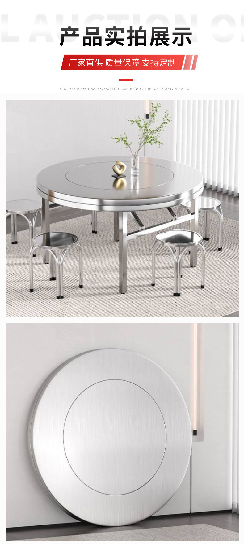 두꺼운 스테인레스 스틸 턴테이블 라운드 테이블 접이식 턴테이블 테이블 가든 테이블 바베큐 야식 소형 원형 테이블 캔틴 테이블스토어 가기