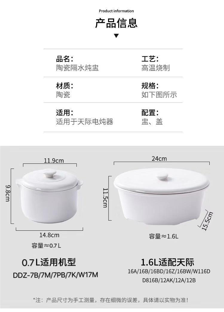 세라믹 방수 스튜 컵, 새의 둥지 컵, 계란찜 컵, 뚜껑이 있는 크고 작은 라이너, 건강 스튜 냄비, 밀봉된 대형 스튜 냄비