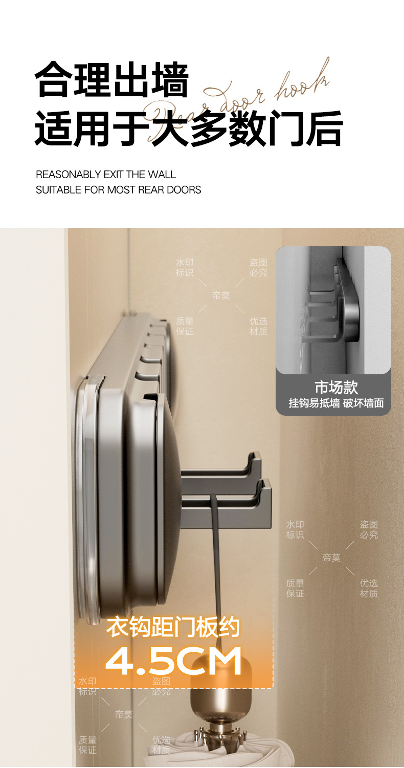 흡착식 도어 후면 후크, 접착식 후크, 옷걸이, 펀치 없는 벽걸이형 접착식 후크, 출입문 수납선반