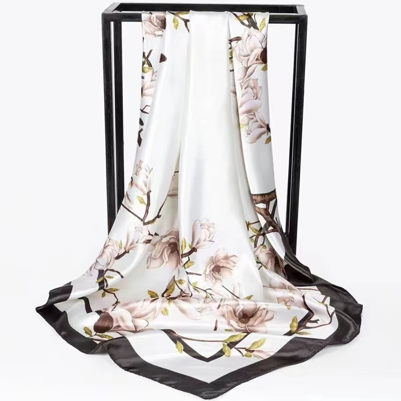 캐슈넛 패턴 여성용 인조 실크 스카프, 허리 드럼 플라워 시리즈, 전문적인 대형 사각 스카프, 숄, 스카프 도매스토어 가기