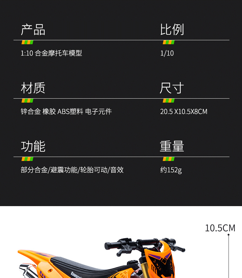 1:10 캐빈치 산악 오프로드 모터사이클 모델 합금 경주용 오토바이 장식 소품 남자아이 장난감 소리나는 장난감 자동차