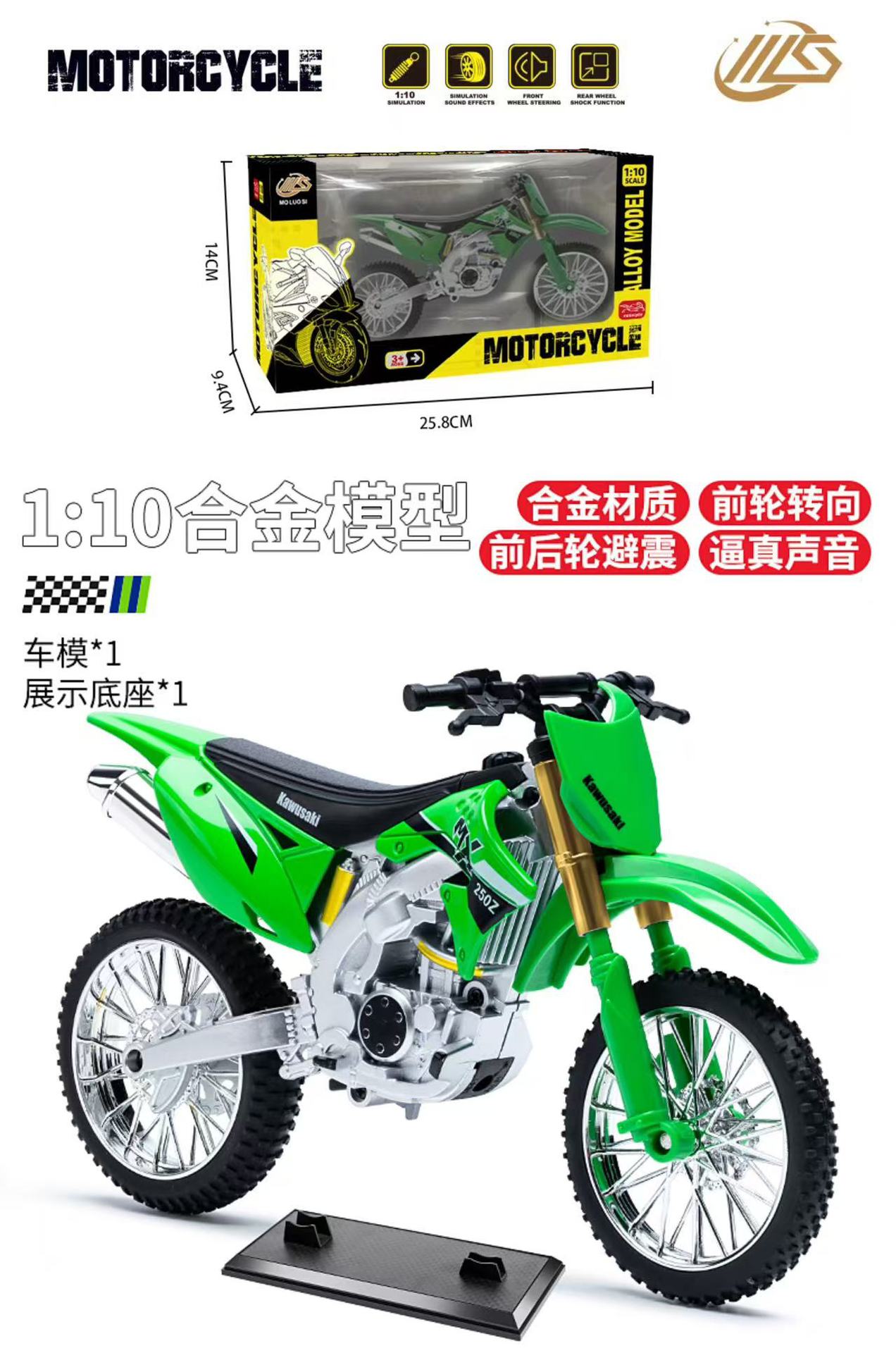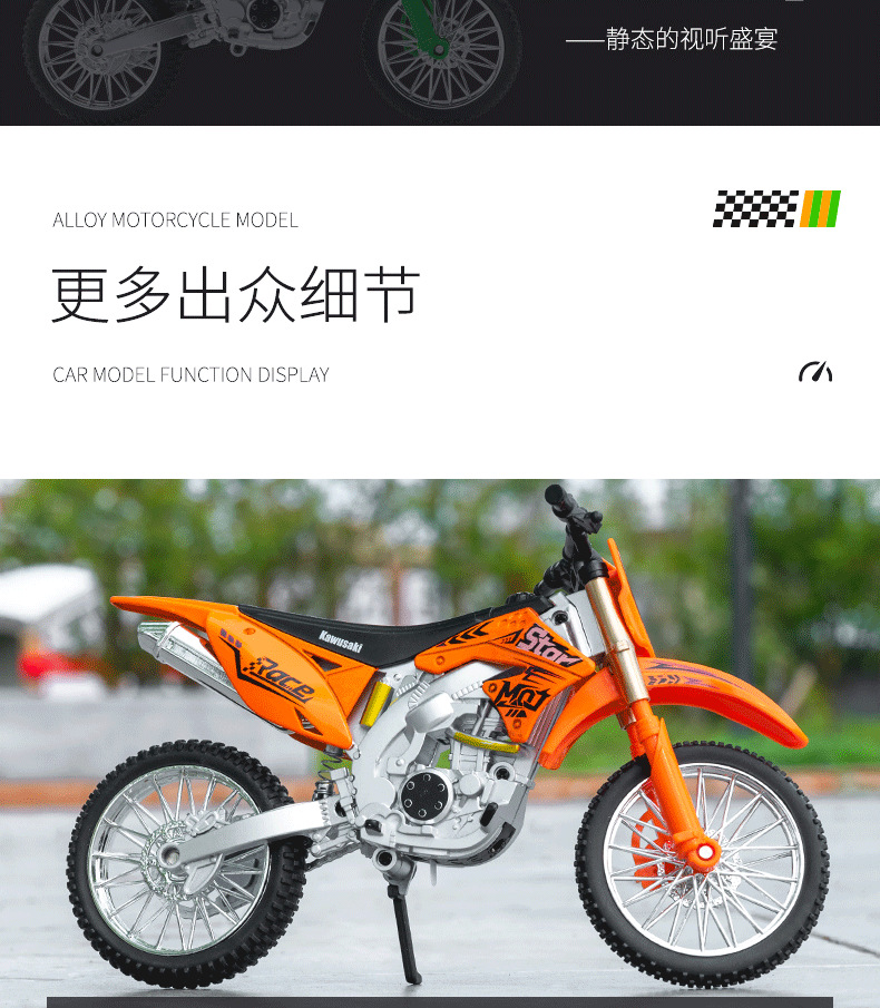 1:10 캐빈치 산악 오프로드 모터사이클 모델 합금 경주용 오토바이 장식 소품 남자아이 장난감 소리나는 장난감 자동차스토어 가기
