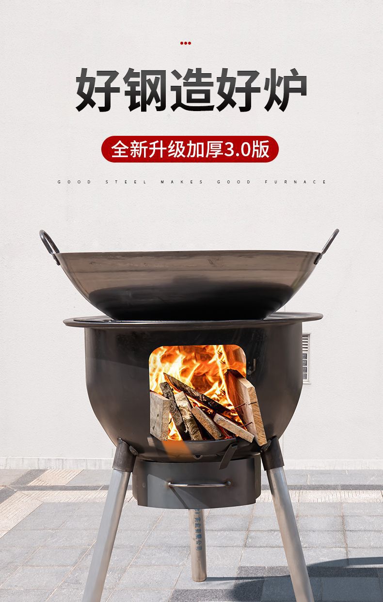 야외 장작 스토브 새로운 야외 농촌 장작 스토브 장작 모바일 통합 스토브 가정용 철 냄비 스토브