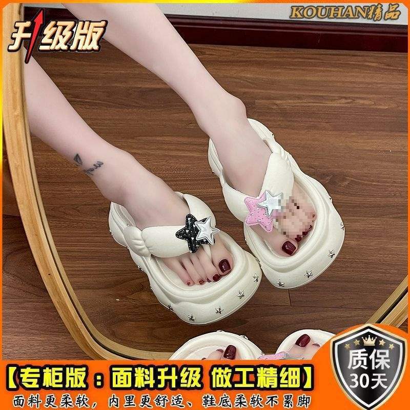 여름 아우터용 여성용 Y2K 스타일 두꺼운 밑창 플립플롭 2025 새로운 부드러운 밑창 다용도 여성용 비치 샌들스토어 가기