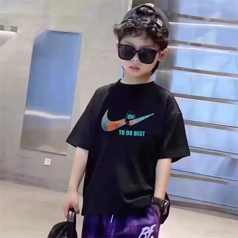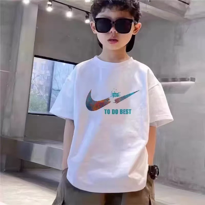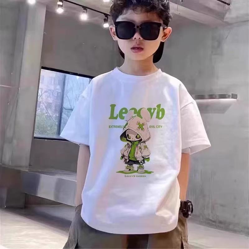 중대형 어린이를 위한 다재다능한 여름 스타일, 새로운 스타일의 어린이 2025 흰색 반팔 t 트렌디 의류 소년 여름 순면 셔츠스토어 가기