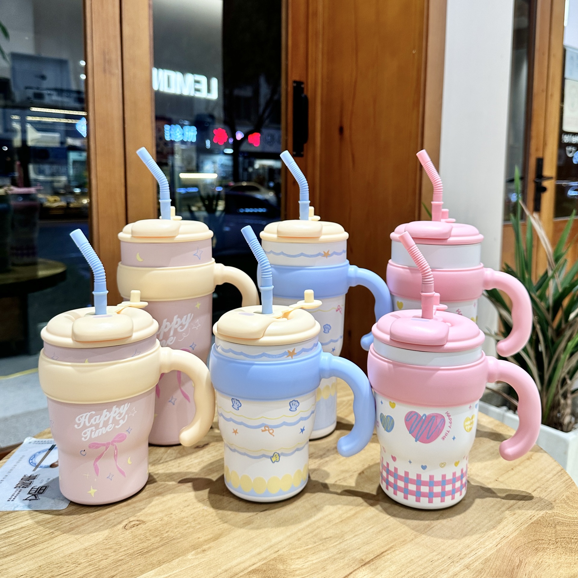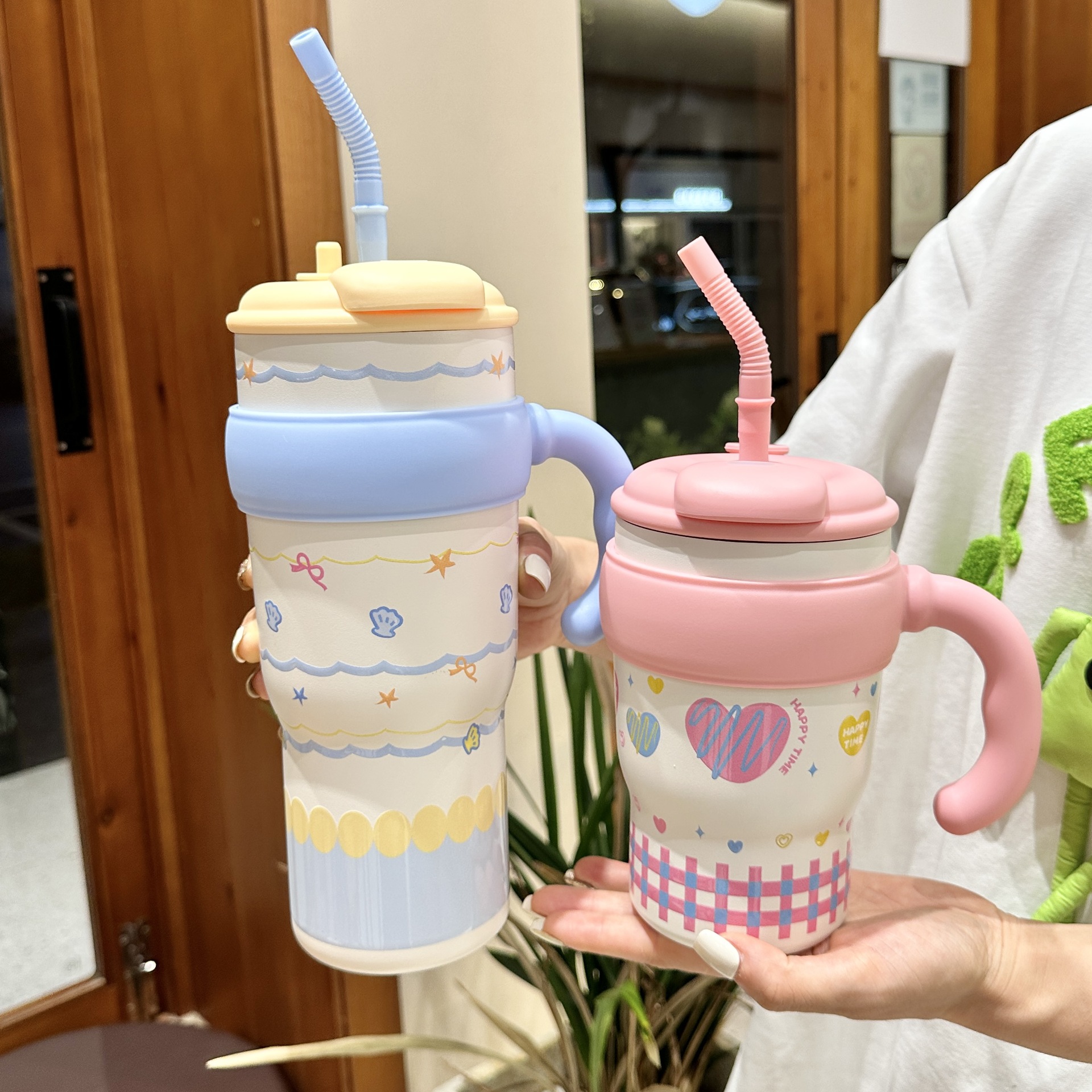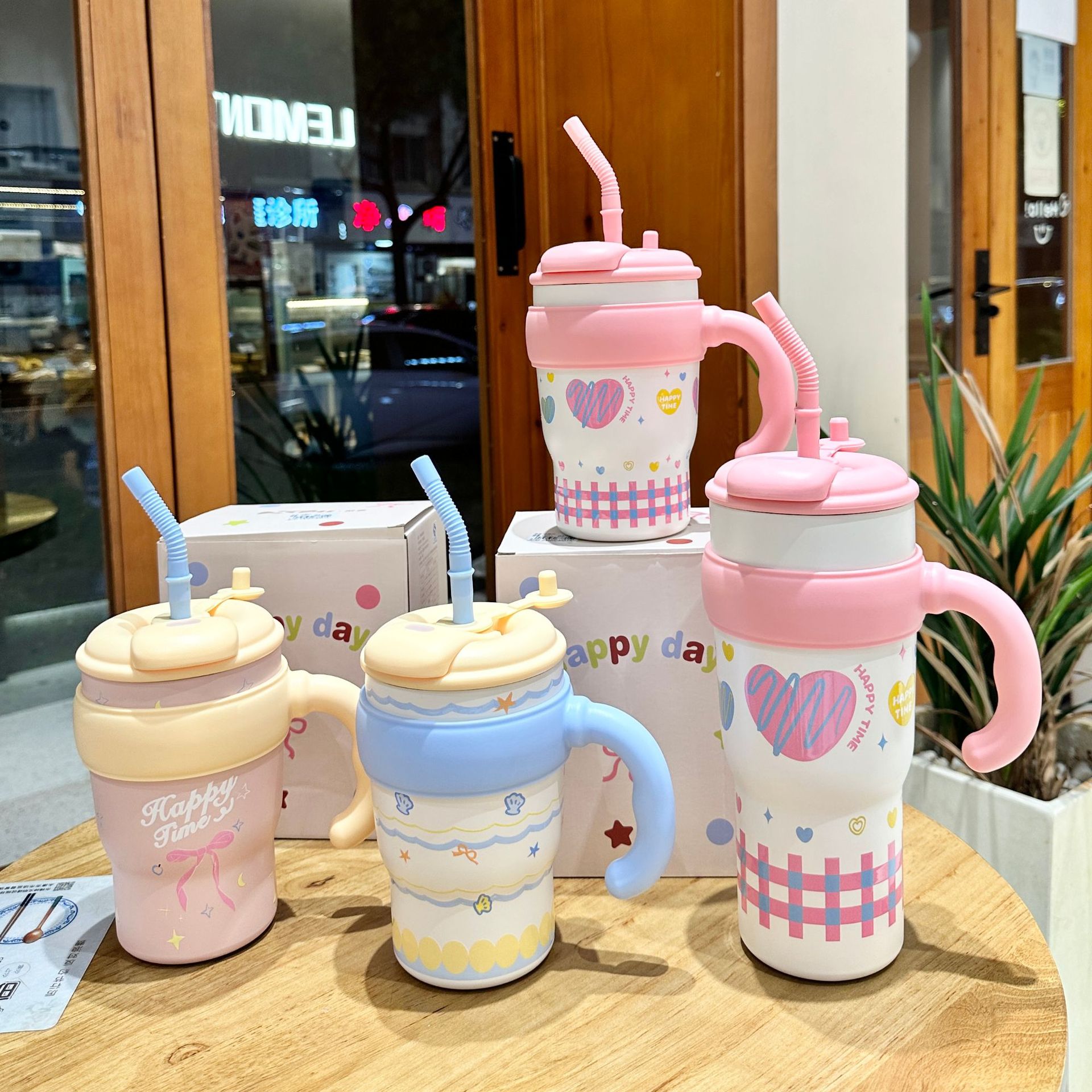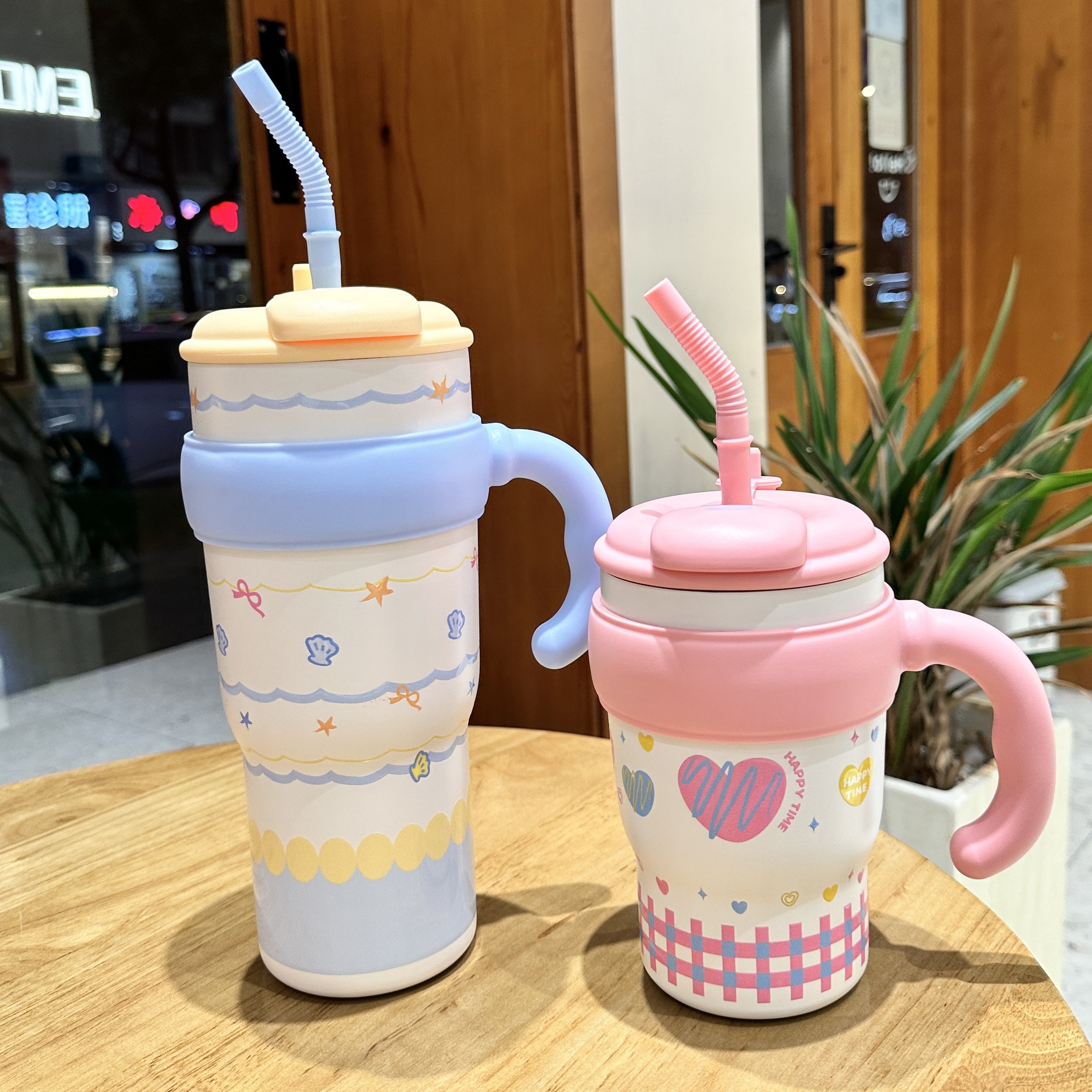 맥도날드 보온병 컵 대형 대용량 소녀 식품 등급 스테인레스 스틸 밀짚 컵 2025 새로운 아이스 컵