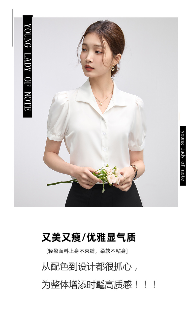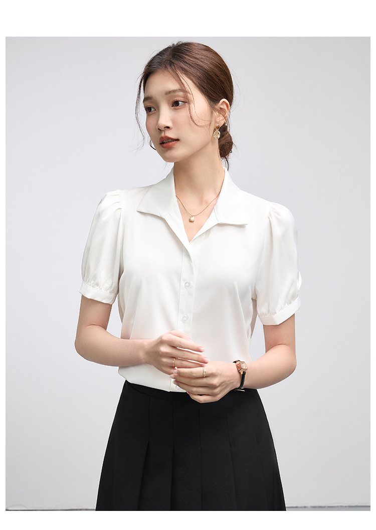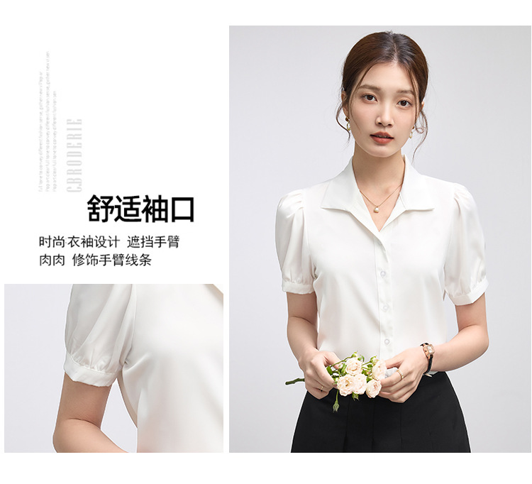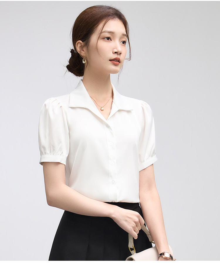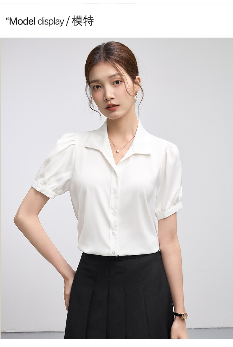 2025 여름 여성용 흰색 반팔 쉬폰 셔츠 인터뷰 탑 소형 전문 정장 셔츠스토어 가기
