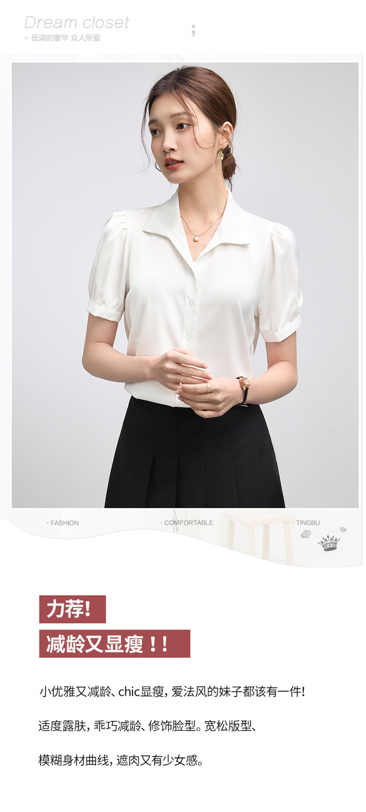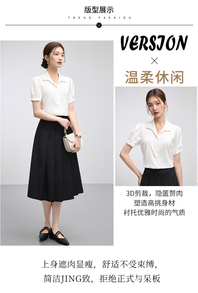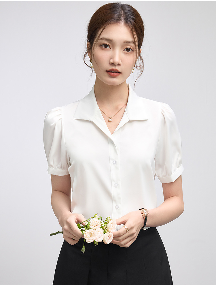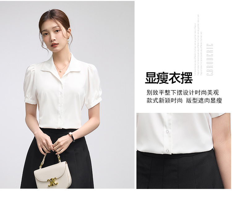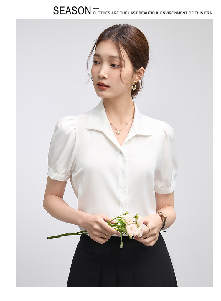 2025 여름 여성용 흰색 반팔 쉬폰 셔츠 인터뷰 탑 소형 전문 정장 셔츠스토어 가기