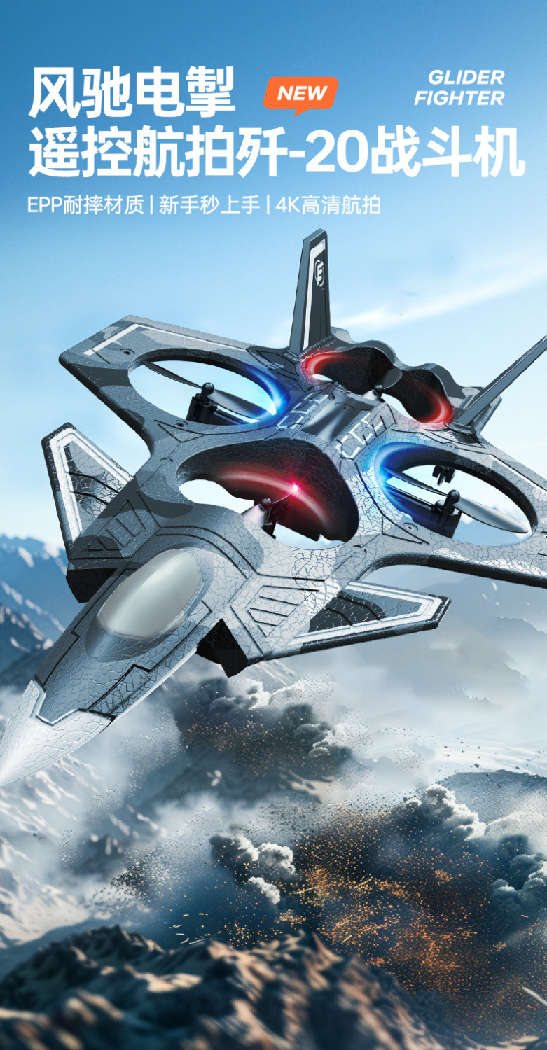 • 항공촬영모형 - 4K 항공촬영 10세대 J-20 전투기 - 블루