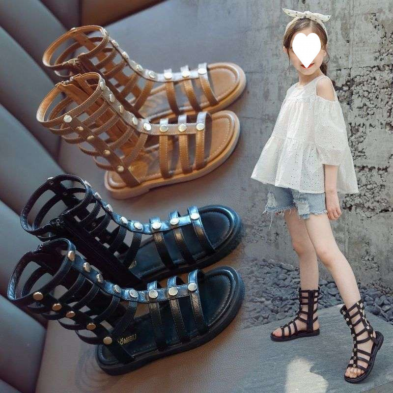 여자 샌들 2025 새로운 패션 어린이 여름 어린 소녀 한국어 스타일 로마 신발 유행 큰 어린이 공주 샌들