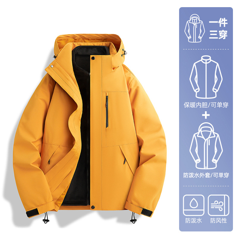 딱따구리 노란색 재킷 여성 재킷 가을 2025 새로운 3-in-one 방풍 야외 등산 컬러 매칭 재킷